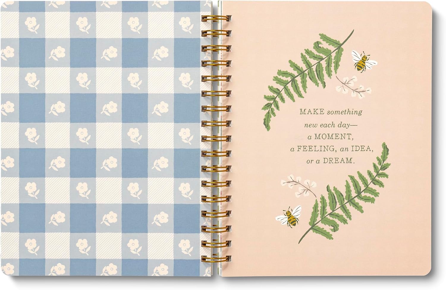 - INSPIRING COVER: This spiral journal has a cover in the cottagecore aesthetic featuring a foil-stamped statement that reads, “Joy Is Handmade.”