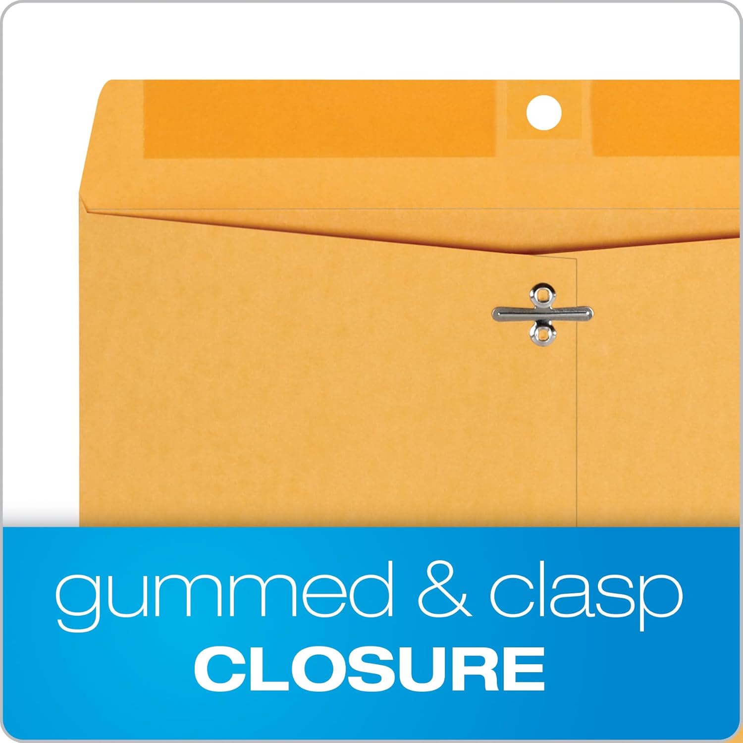 Quality Park, QUA37893, Gummed Kraft Clasp Envelopes, 100 / Box, Kraft, 9.5 x 12.5 Inches