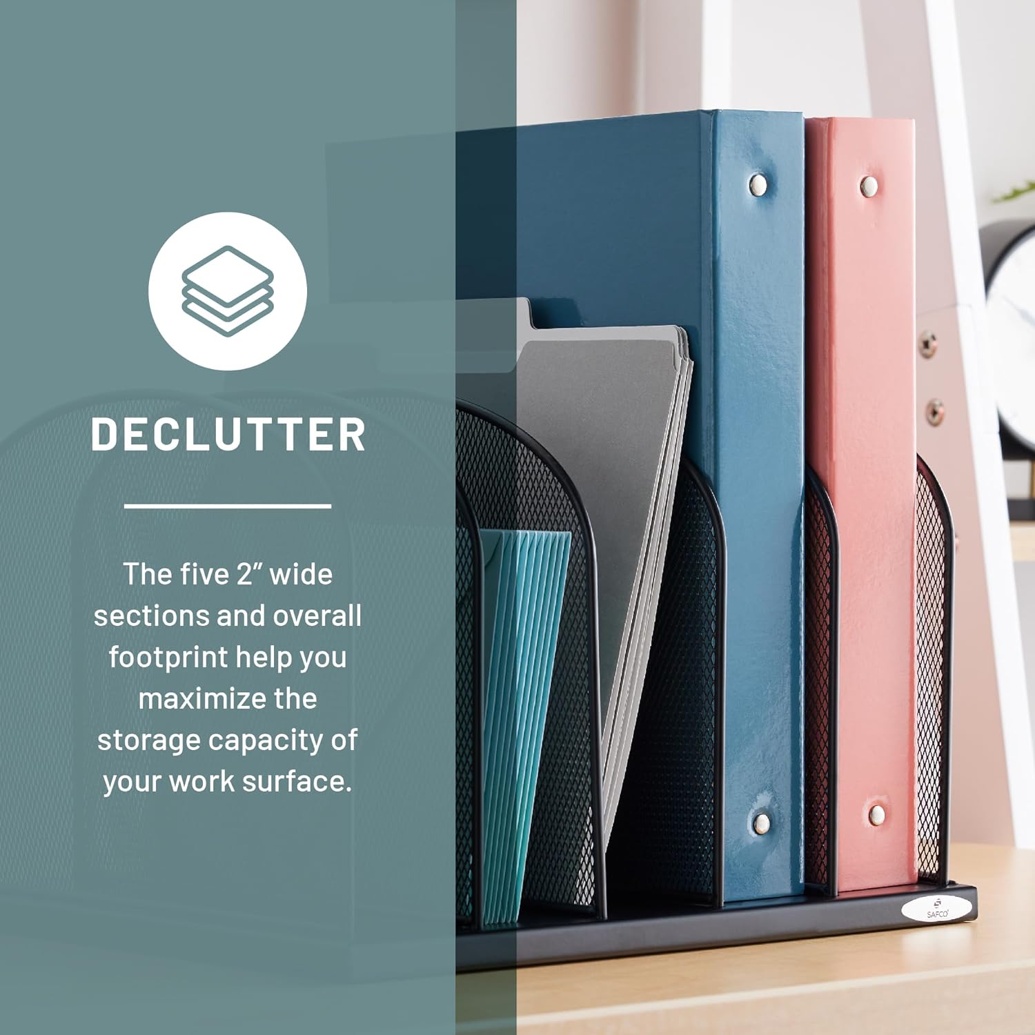 Safco Onyx Desk Organizer, 5 Tiered Vertical Compartments, Office and Classroom Mailbox , Paper and Mail Sorter, Steel Mesh, Black