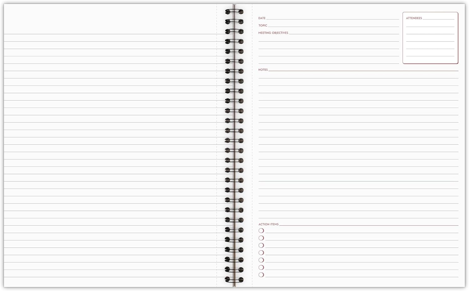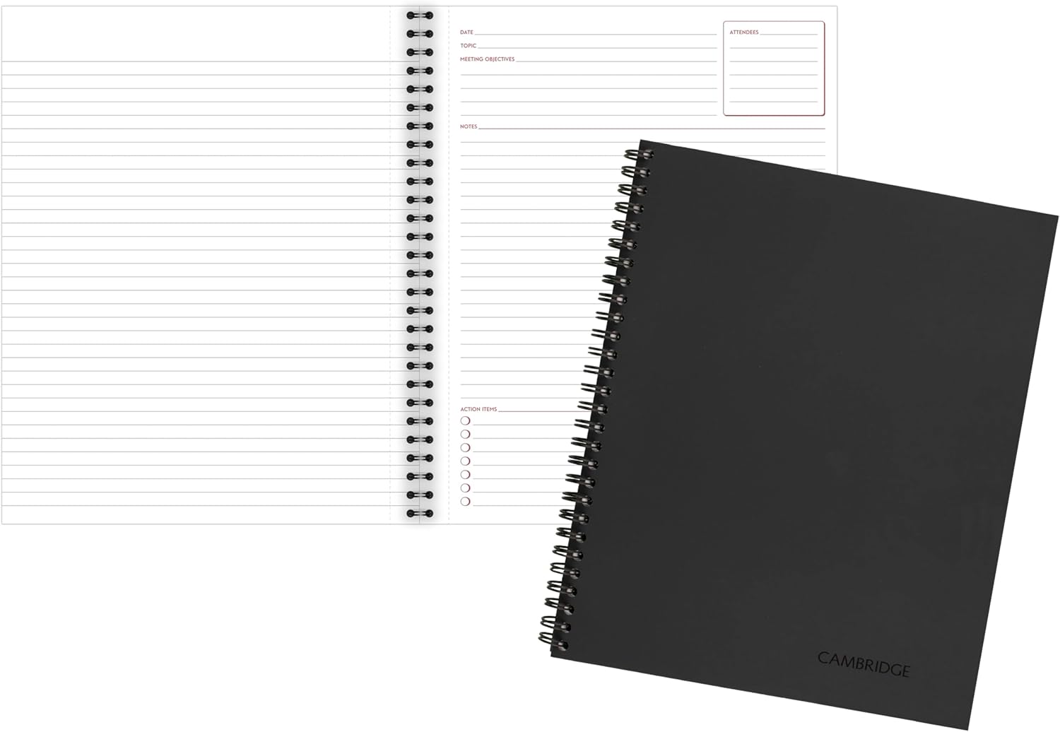 - Unique format helps organize your meeting notes and action items
