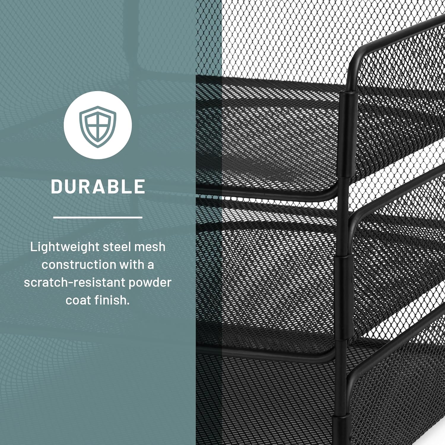 - ORGANIZER- Onyx steel mesh triple tray desk organizer