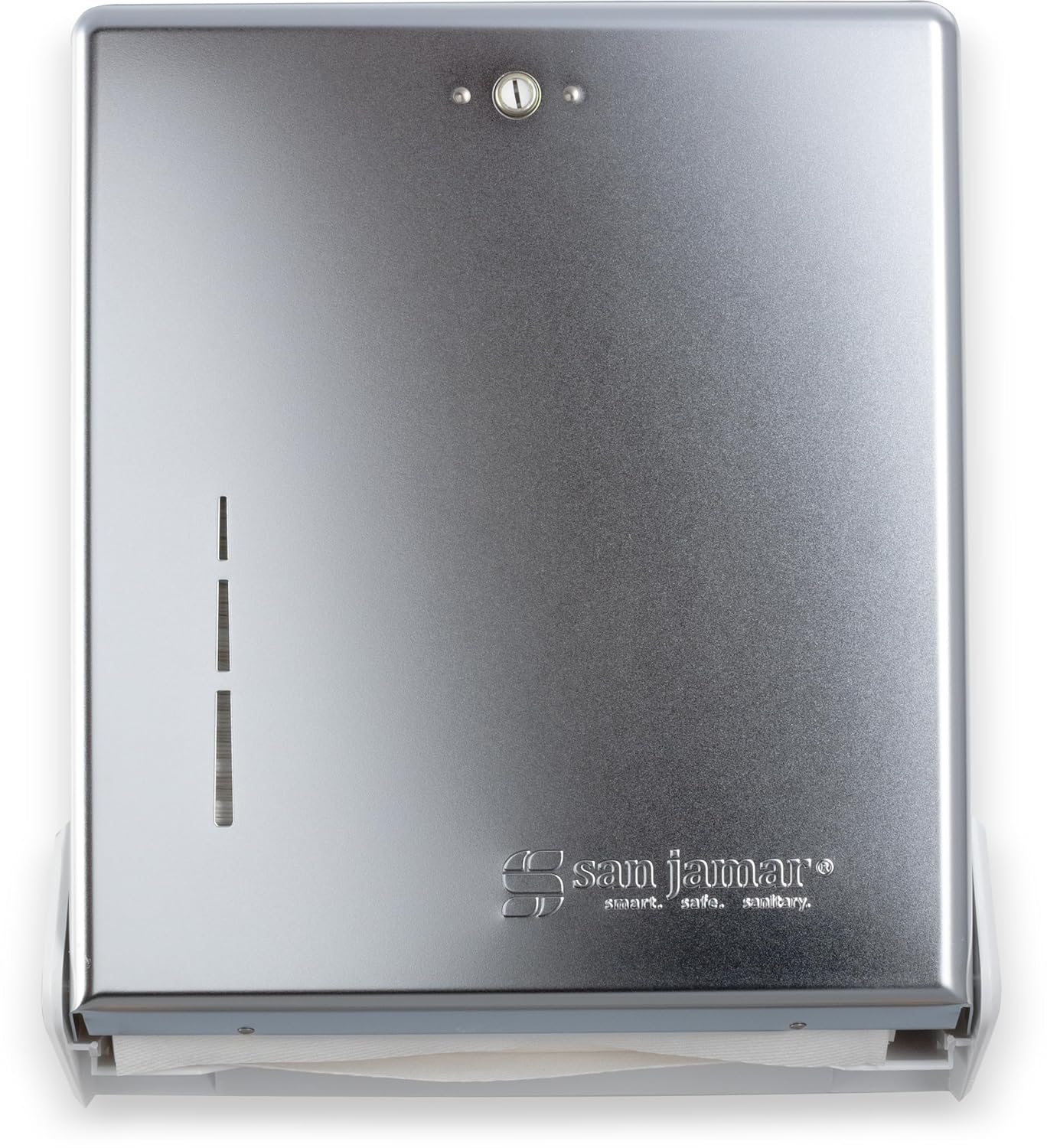 San Jamar True Fold Paper Towel Dispenser Holds Multifold/C-Fold Towels for Bathroom, Kitchens, and Restaurants, Metal and Plastic, 14.5 x 11.375 x 5 Inches, Chrome