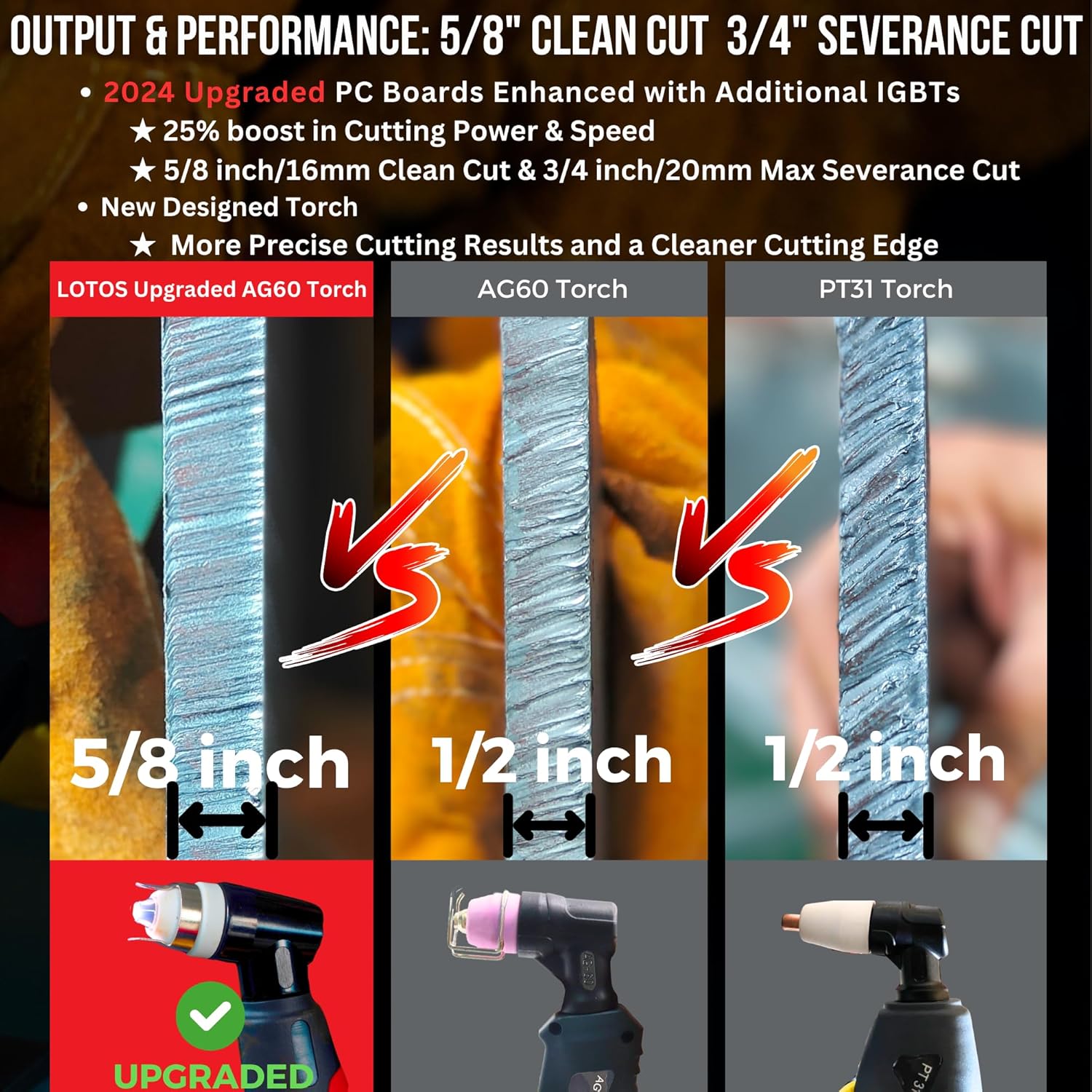 - ā šššš šš©š š«šššš ššØššš„: 5/8-inch (16mm) Clean Cut, 3/4-inch (20mm) Severance Cut, Newly Upgraded PC board, Remarkable 25% Increase in Cutting Power compared to other standard 50-amp plasma cutters.