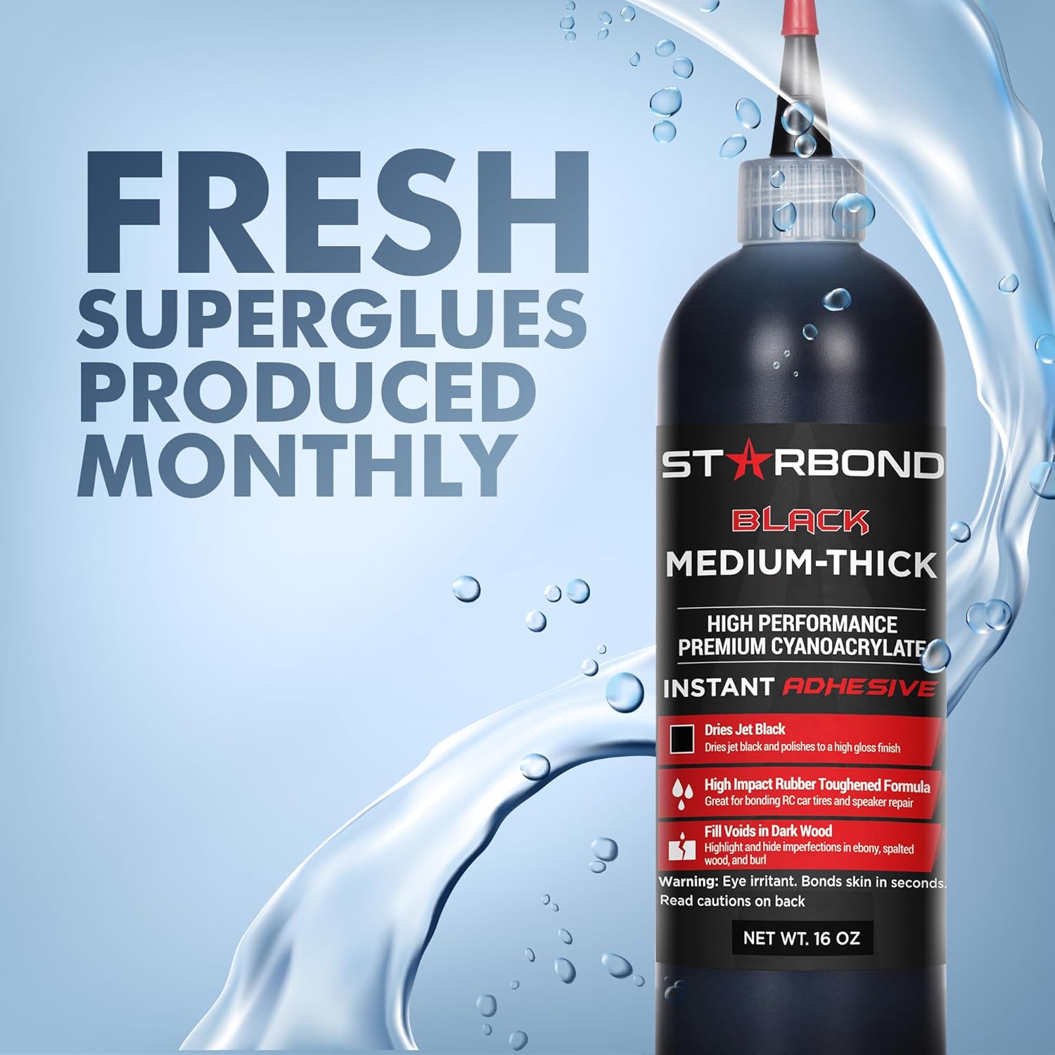 - ā PREMIUM CYANOACRYLATE SUPER GLUE - LAB TESTED FOR OPTIMAL PERFORMANCE: High performance industrial grade adhesive. Starbond Black Medium Thick CA is used to bond parts, with focus on impact and shock absorbance qualities.