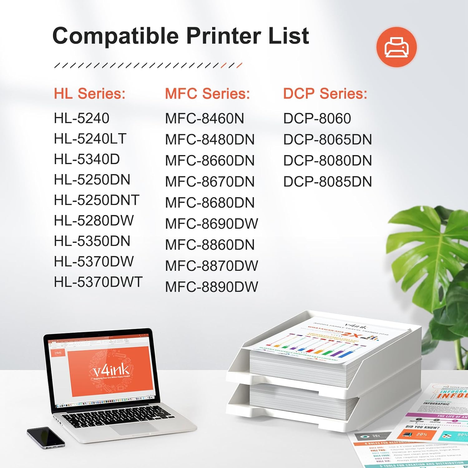 - Suitable for: Brother HL-5240,HL-5250DN, HL-5250DNT, HL-5270DN, HL-5280DW, HL-5340D, HL-5350DN, HL-5350DNLT, HL-5370DW, HL-5370DWT, HL-5380DN, MFC-8370, MFC-8460N, MFC-8470DN, MFC-8480DN, MFC-8660DN, MFC-8670DN, MFC-8680DN, MFC-8690DW,MFC-8860DN,MFC-8870DW, MFC-8890DW, MFC-8880DN, DCP-8060, DCP-8065DN, DCP-8080DN,DCP-8085DN Printer.