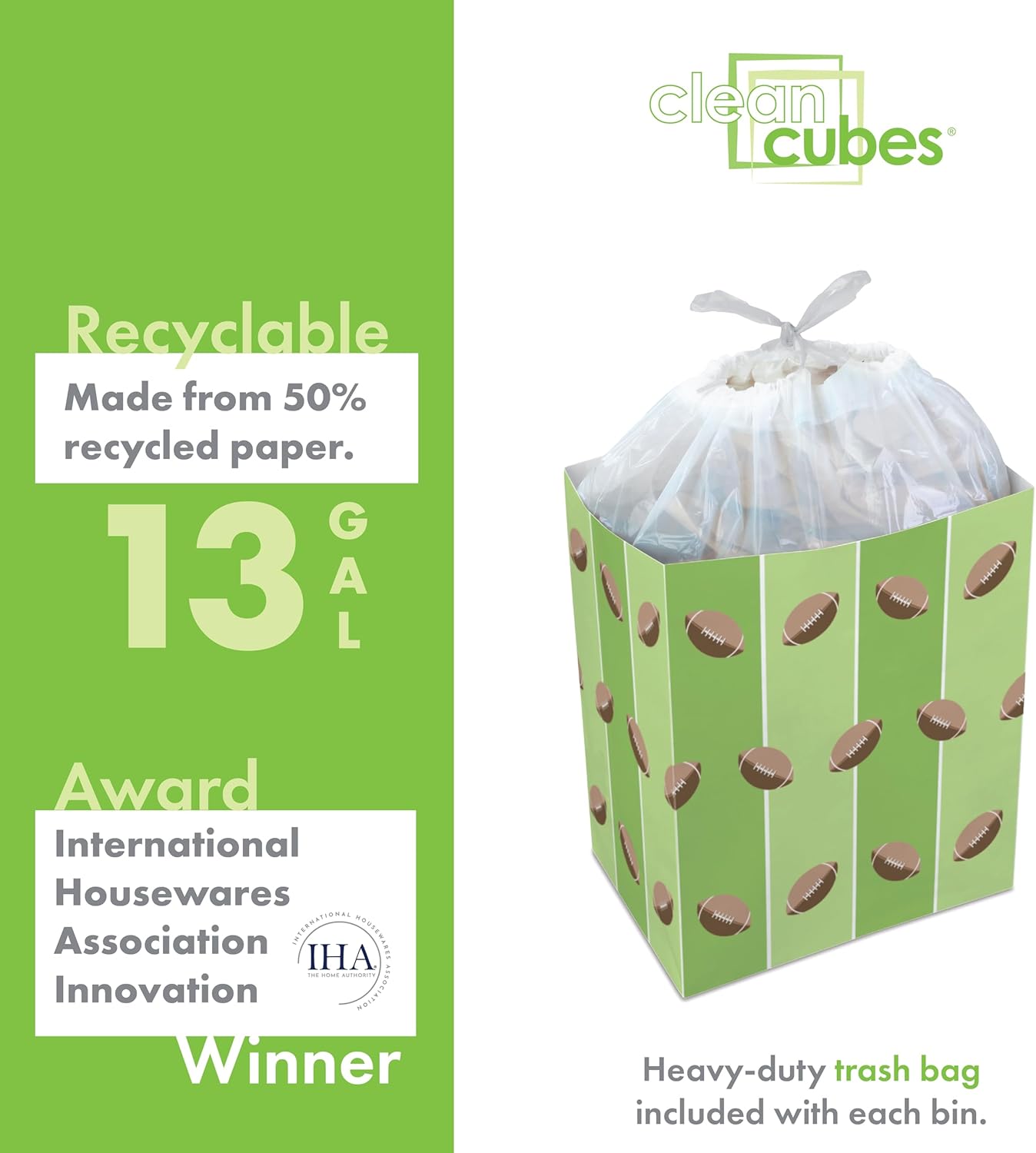 | 13 Gallon Disposable Trash Cans (3-Pack) with Fitted Trash Bags - Reusable Garbage and Recycling Bins for Parties, Events, and More (Tailgating - 17" Height x 13.5" Width x 10" Depth)