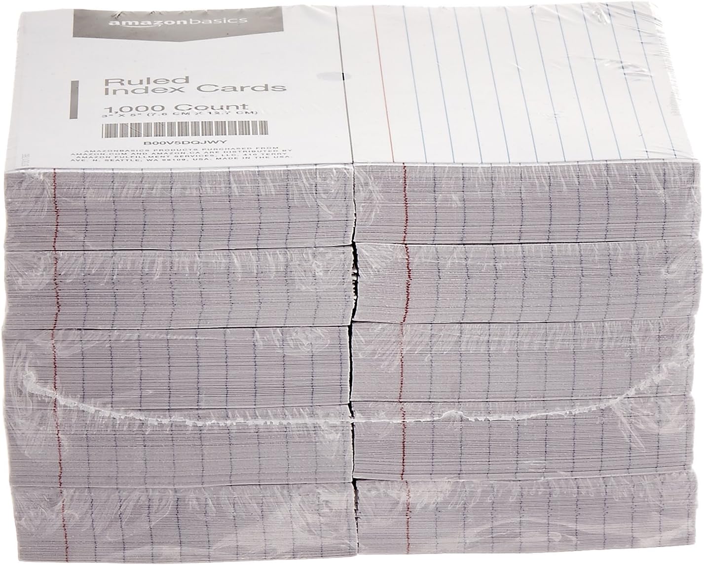Amazon Basics Ruled Lined Index Cards, 1000 count, 10 Pack of 100, White, 3 in x 5 in