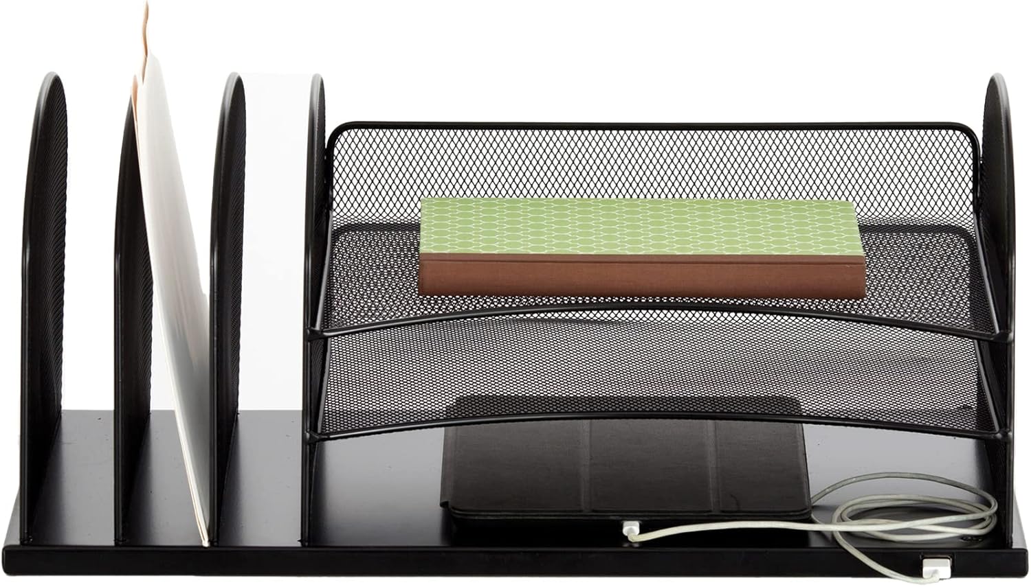 Safco Products 3231BL Onyx Desktop Organizer with USB Charging Port, 3 Section File Sorter, 3 Paper Trays, Durable Steel Construction, Black