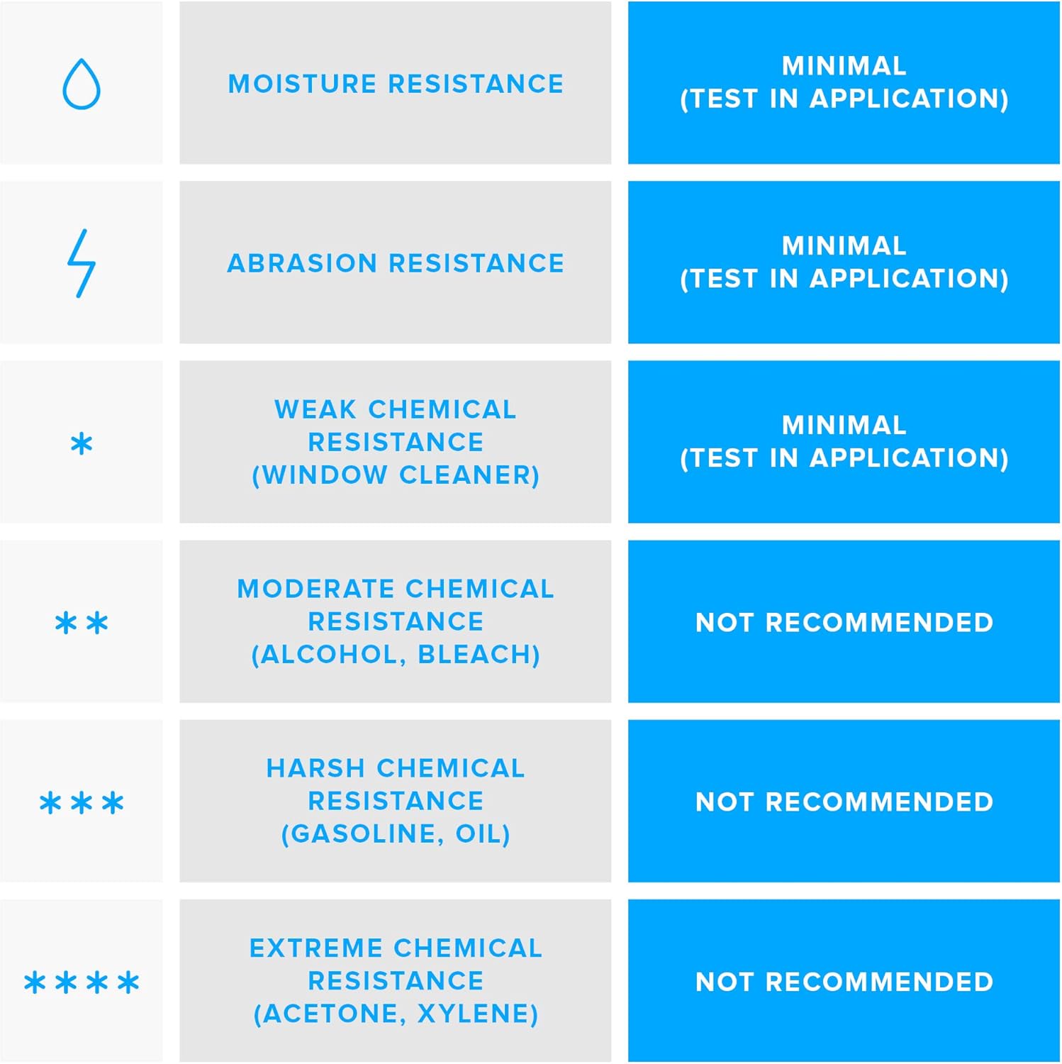 - Standard coated paper label: Some moisture and weak chemical (i.e. window cleaner) resistance; can withstand temperatures from -65°F (-54°C) to 200°F (93°C)