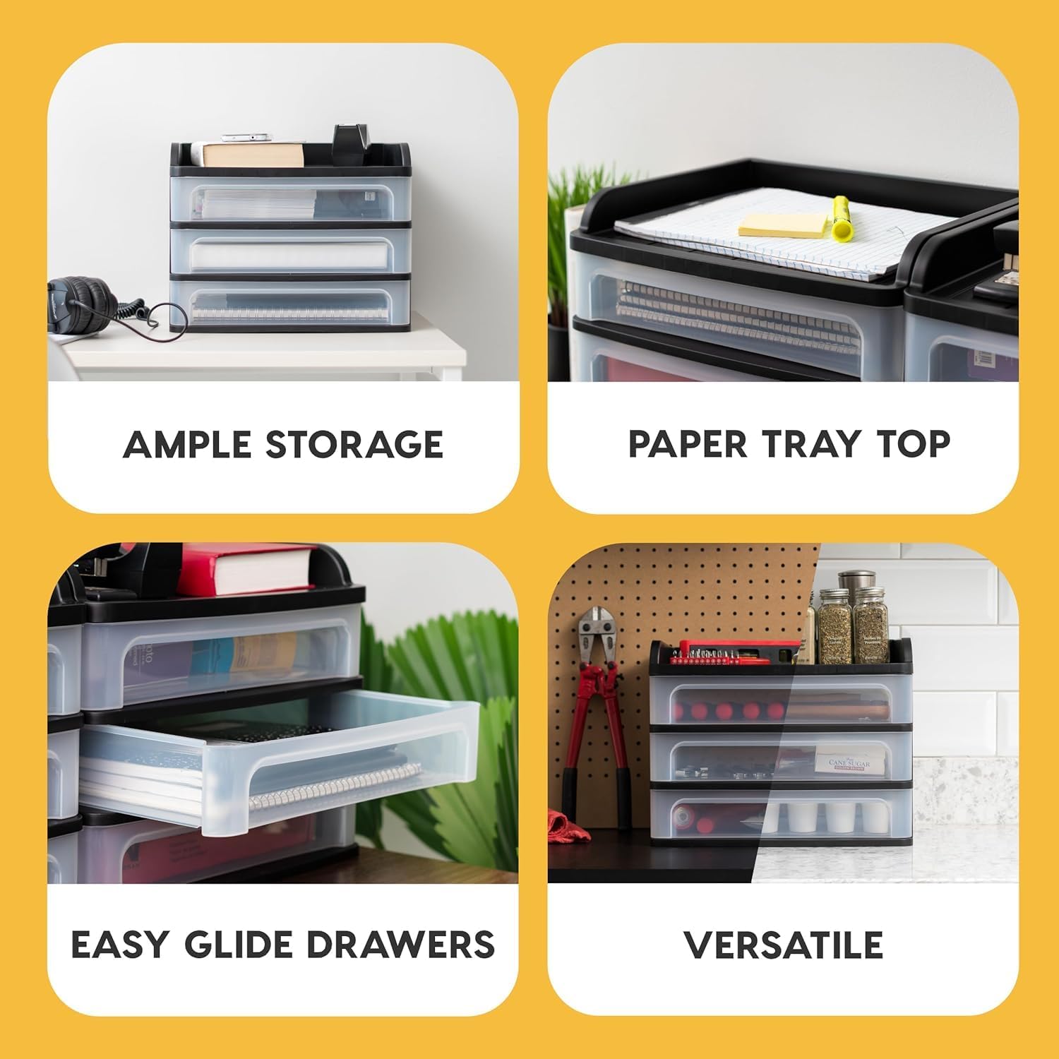 - GRAB & GO CONVENIENCE: The lightweight drawers are easy to open to keep things accessible; The tabs at the end of each drawer will prevent them from falling out, but are easy to remove with just a light squeeze on the sides