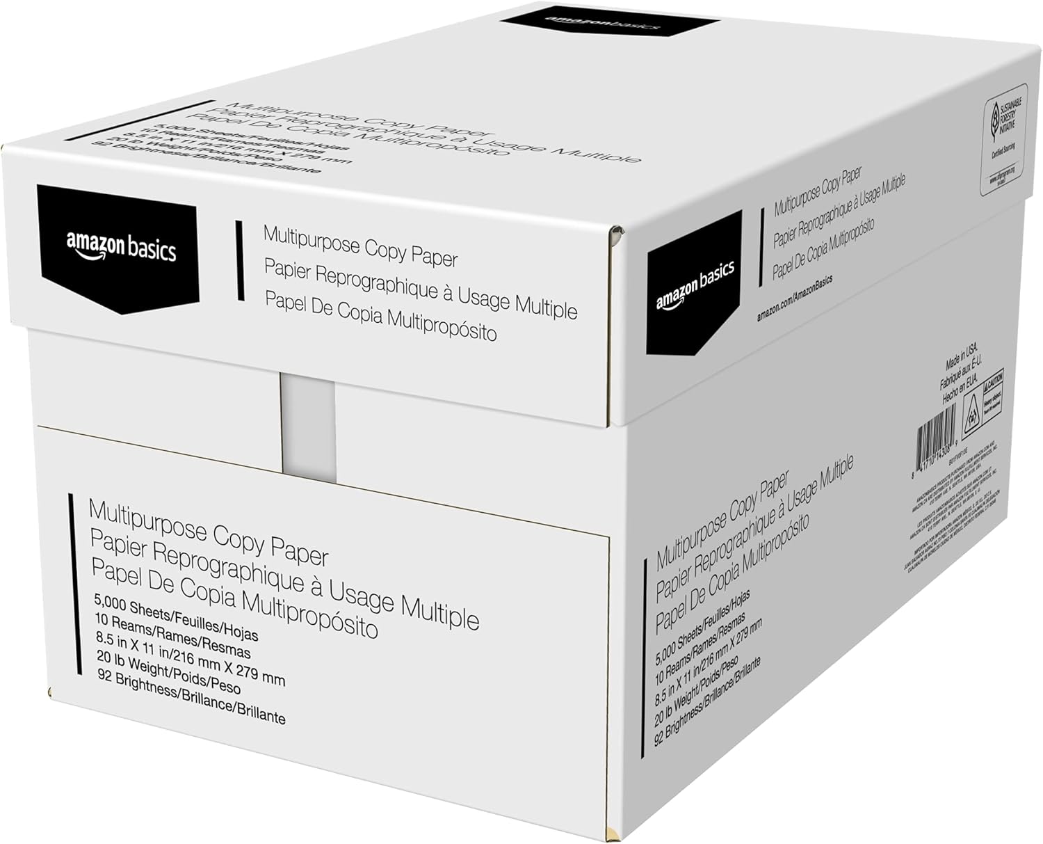 Amazon Basics Multipurpose Copy Printer Paper, 20 lb, 8.5 x 11 Inches, 10 Reams (5,000 Sheets), 92 Bright, White