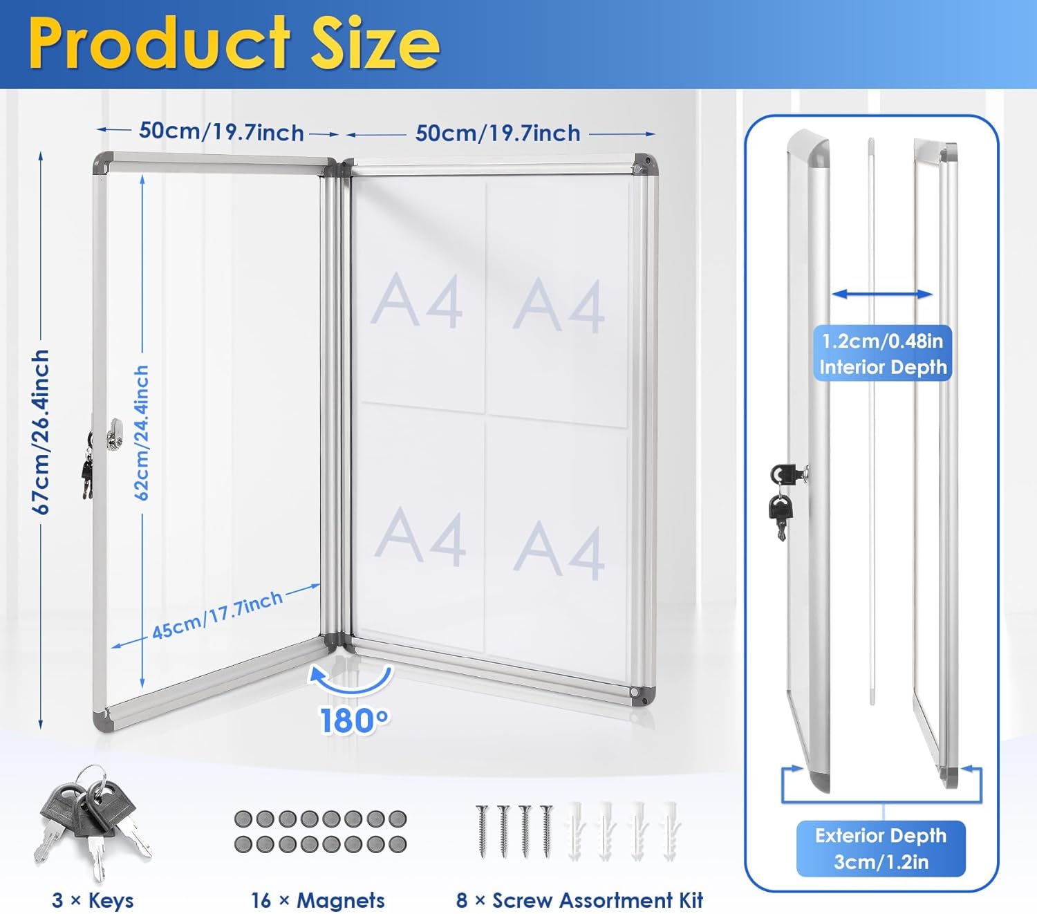 - Professional and Organized Look —Offering a compact solution to save valuable wall space and helps to keep the wall clean and organized,such as an office, school, or community center.