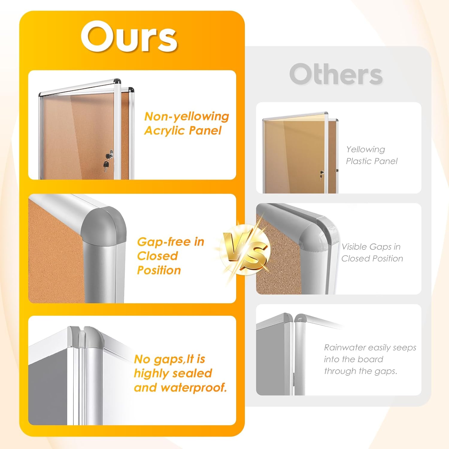 - Secure and Protected Display —Lockable acrylic doors and key mechanisms ensure that important information are kept safe from the elements, theft, or tampering.