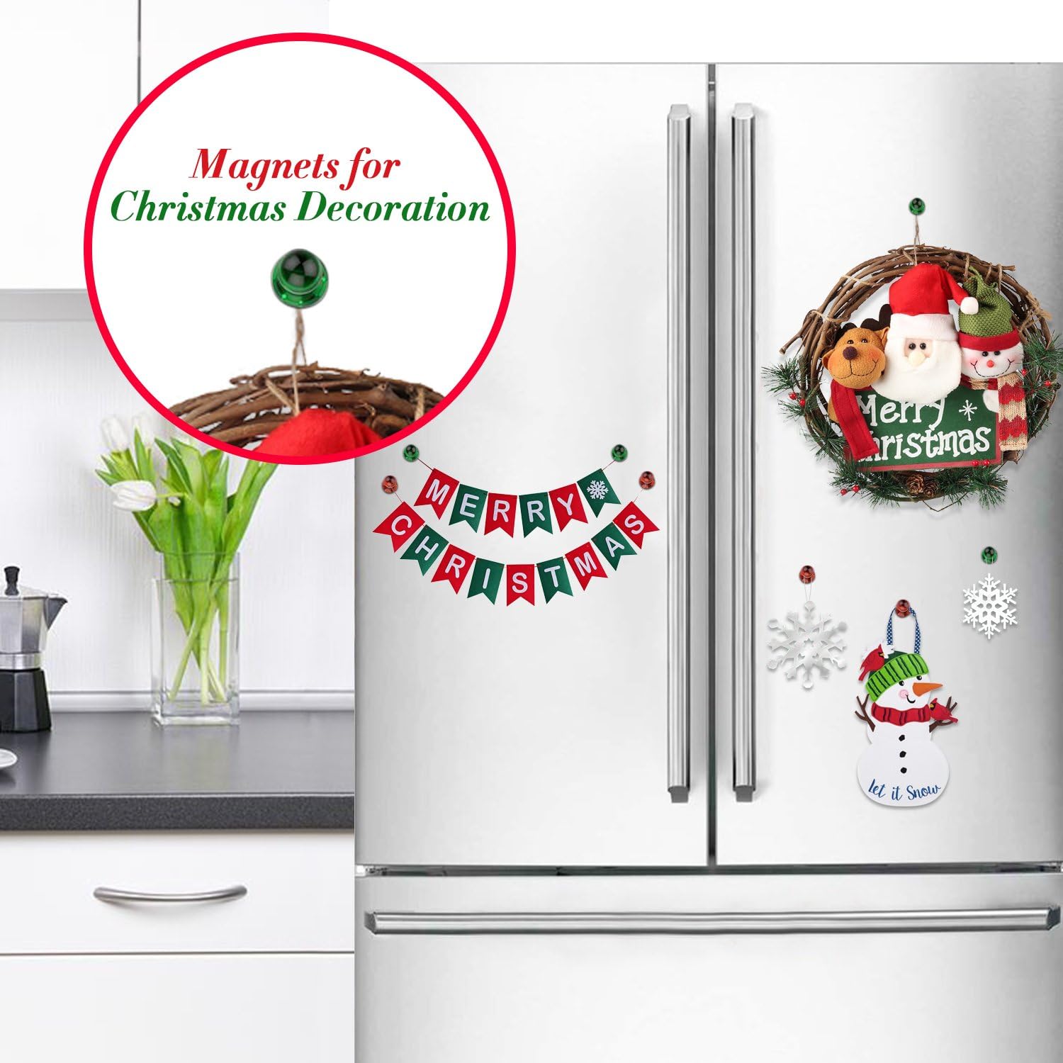 - 7 ASSORTED COLOR: 60 pack little decorative magnets, 7 color including green, blue, yellow, orange, crystal clear, purple and pink. Perfect for color code, organize and Christmas decoration. Just make your office, classroom, school, kitchen and home look bright and cheery! Kids love these colors.