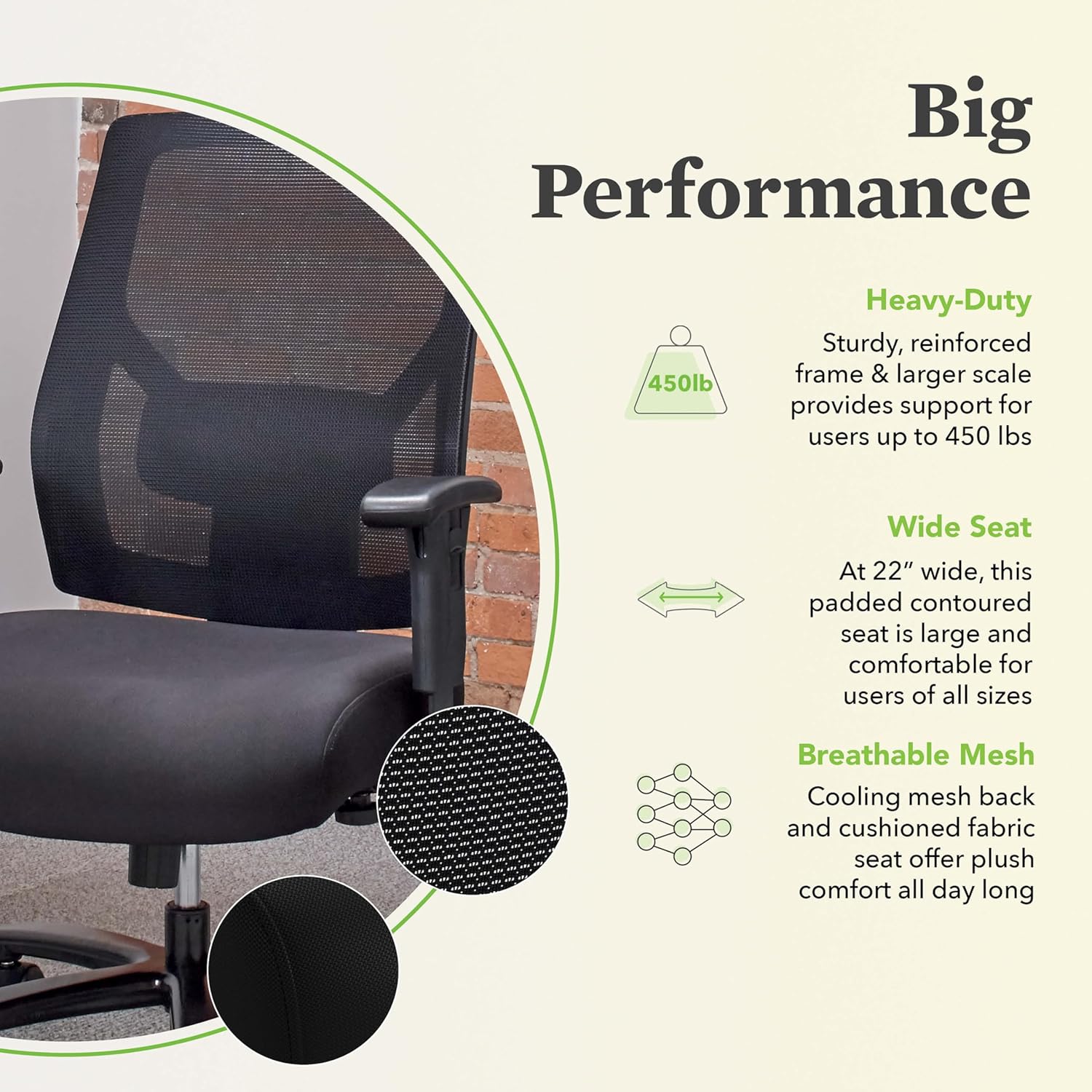 HON Crio Big and Tall Office Chair, 450lbs Weight Capacity, Extra Wide Desk Chair, Heavy Duty Tilt Recline, Swivel Wheels, Comfortable for Long Hours