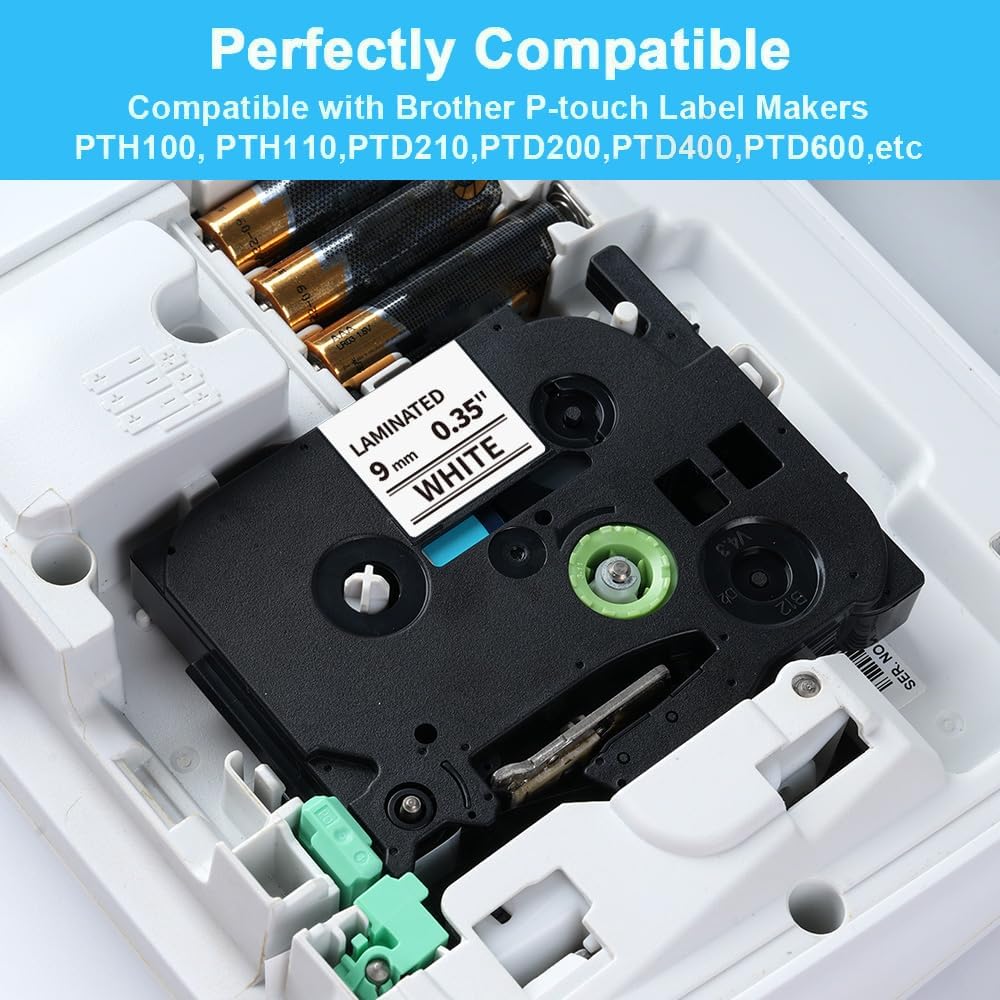 MarkDomain 3-Pack 9mm Label Tape TZe-221 Replacement for Brother TZe TZ Tape 9mm 0.35" Laminated White Label Maker Tape TZe221 TZ221 Work with Ptouch PT H100 H110 D210 D400AD 1290