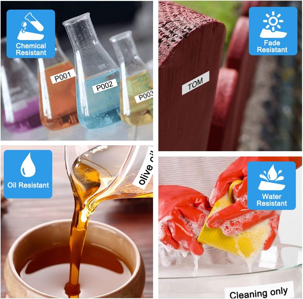- Simple and Practical: Size-9 mm (0.35")* 8 m (26.2'). Color-Black writing on white tape. Simple, clean, safe and beautiful