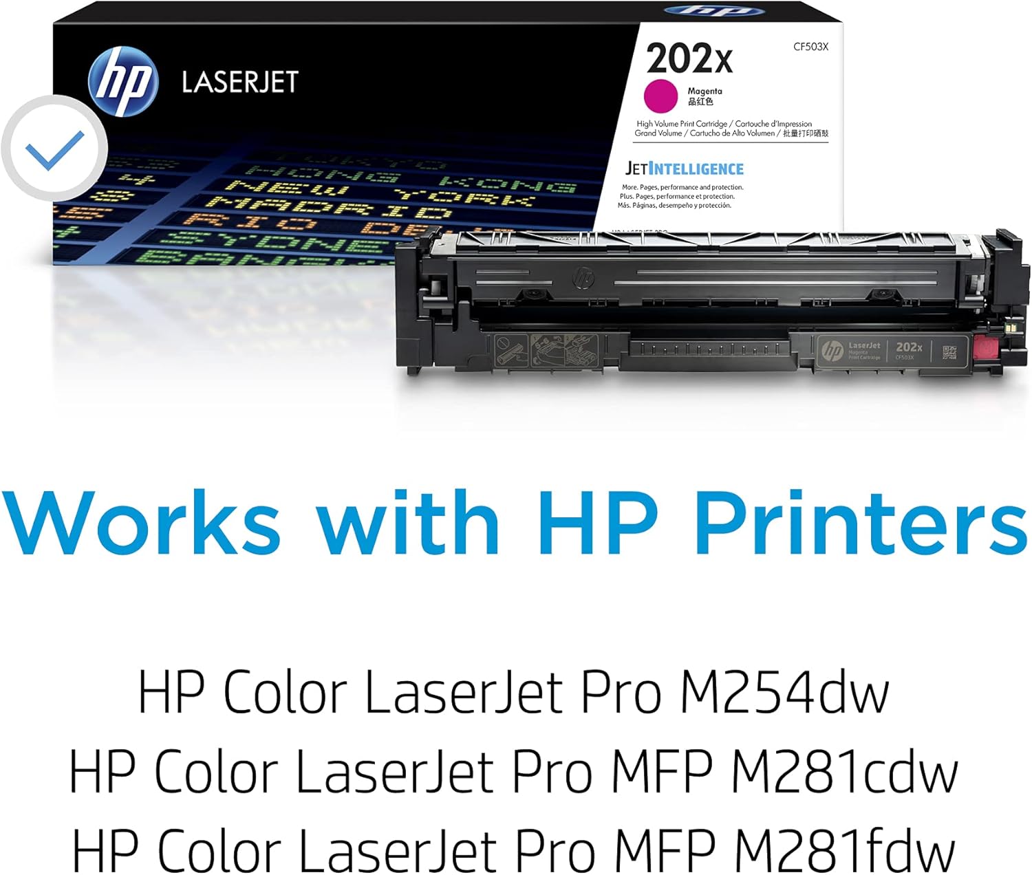 HP 202X Magenta High-yield Toner Cartridge | Works with HP Color LaserJet Pro M254, HP Color LaserJet Pro MFP M281 Series | CF503X