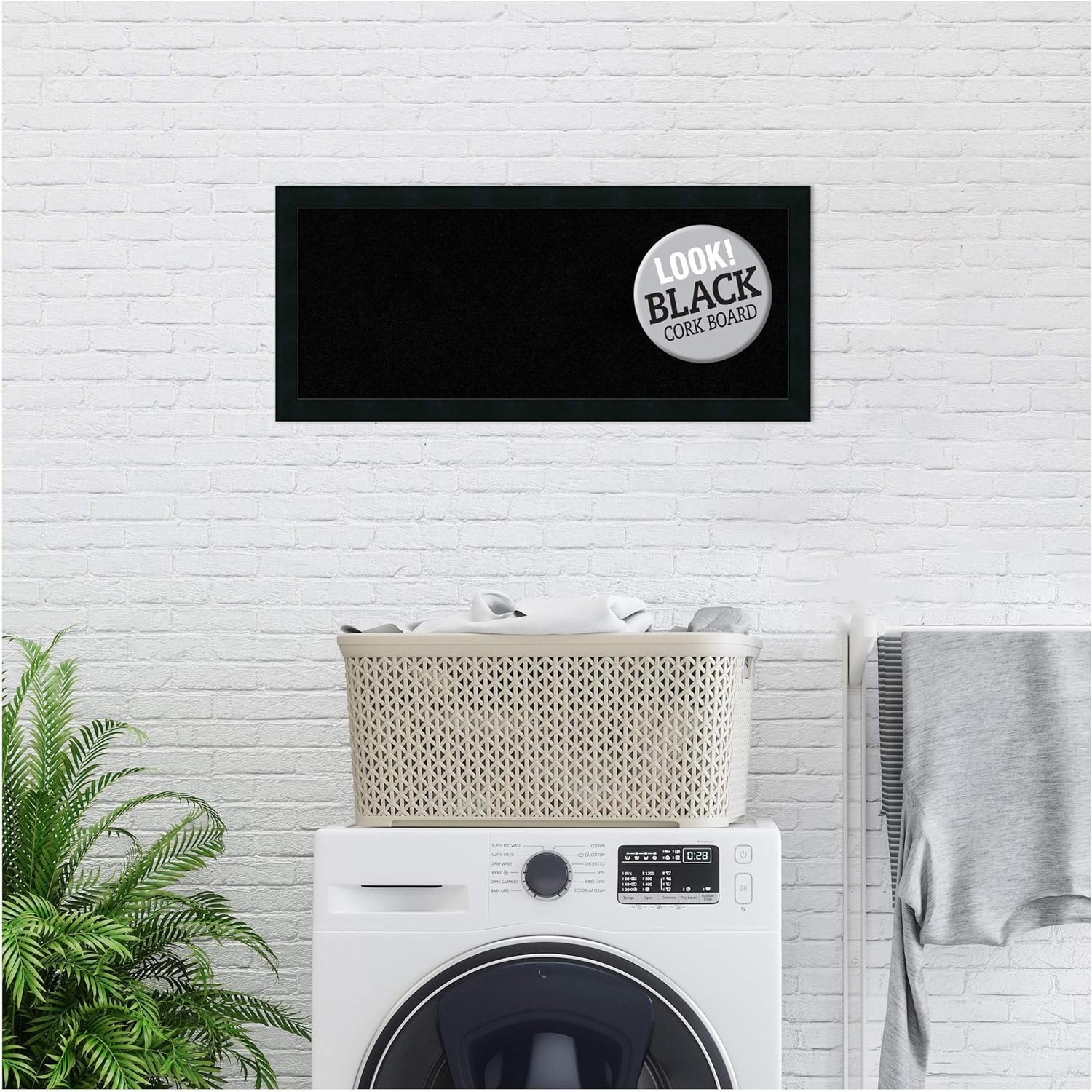 Amanti Art Black Cork Board for Wall, 14x32 Vision Board with Black Wood Frame, Medium Corkboard Office Decor for Home Organization, Modern Contemporary Corkboard Pinboard to display items for home