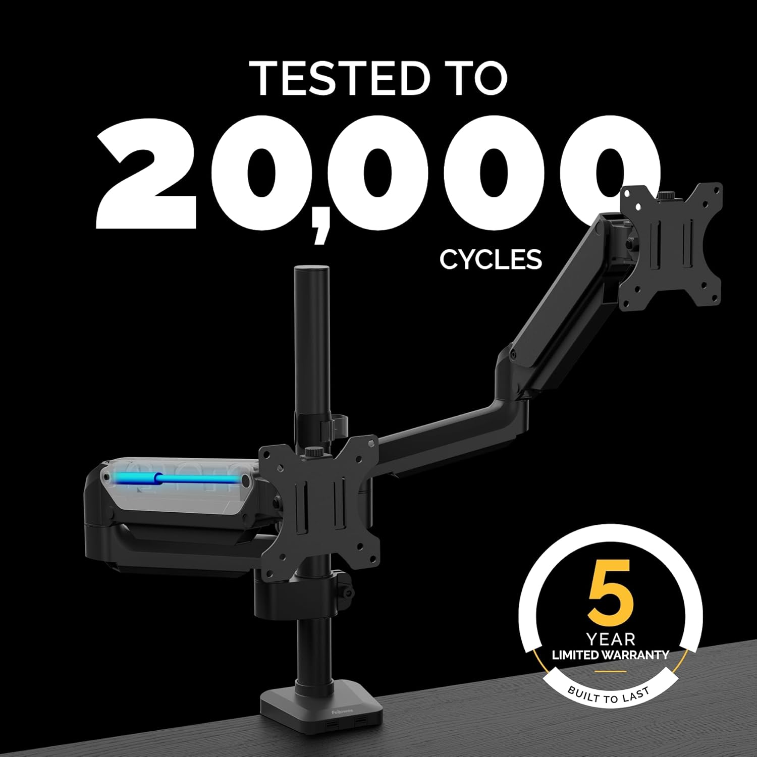 Fellowes 8043401 Platinum Series Stacked Monitor Mount, Adjustable Computer Monitor Stand for 2 Monitors with Dual Monitor Arms, 32 Inch Monitor Capacity