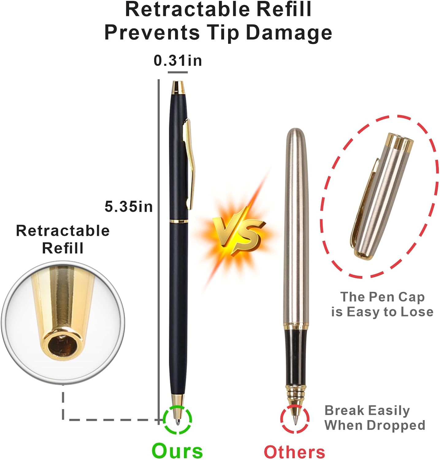 - Comfortable Medium Point Pen: Perfect weight and round barrel for writing comfort, meet all your needs for signing contracts, journaling, or marathon study sessions. These metal pens are built with metal construction for a long time use