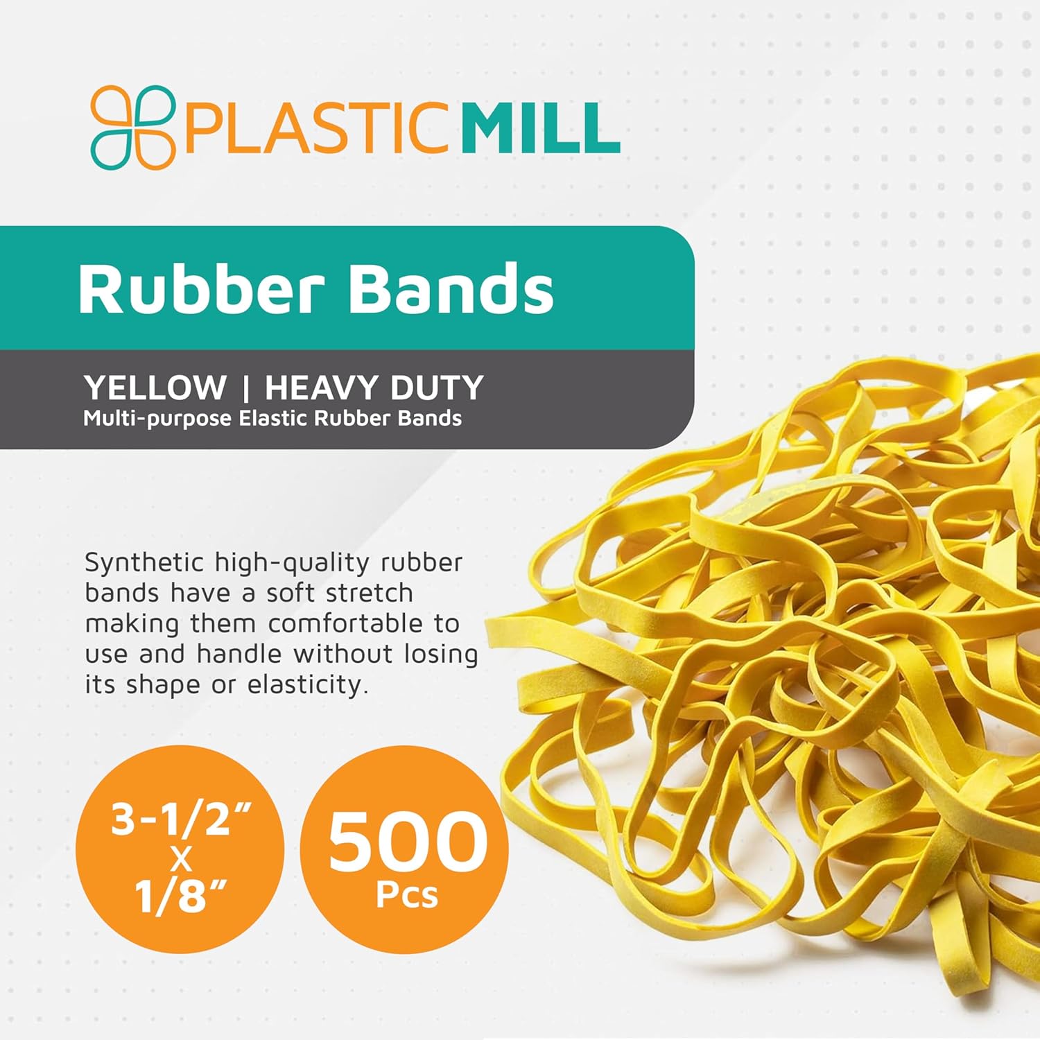 PlasticMill Yellow Rubber Bands Size 33 (3 1/2" x 1/8") - #33 Colored Rubber Bands Office Supplies - Strong, Elastic Bands for Crafts, Balloon Garland, Cash, File Folders (500-Pack)