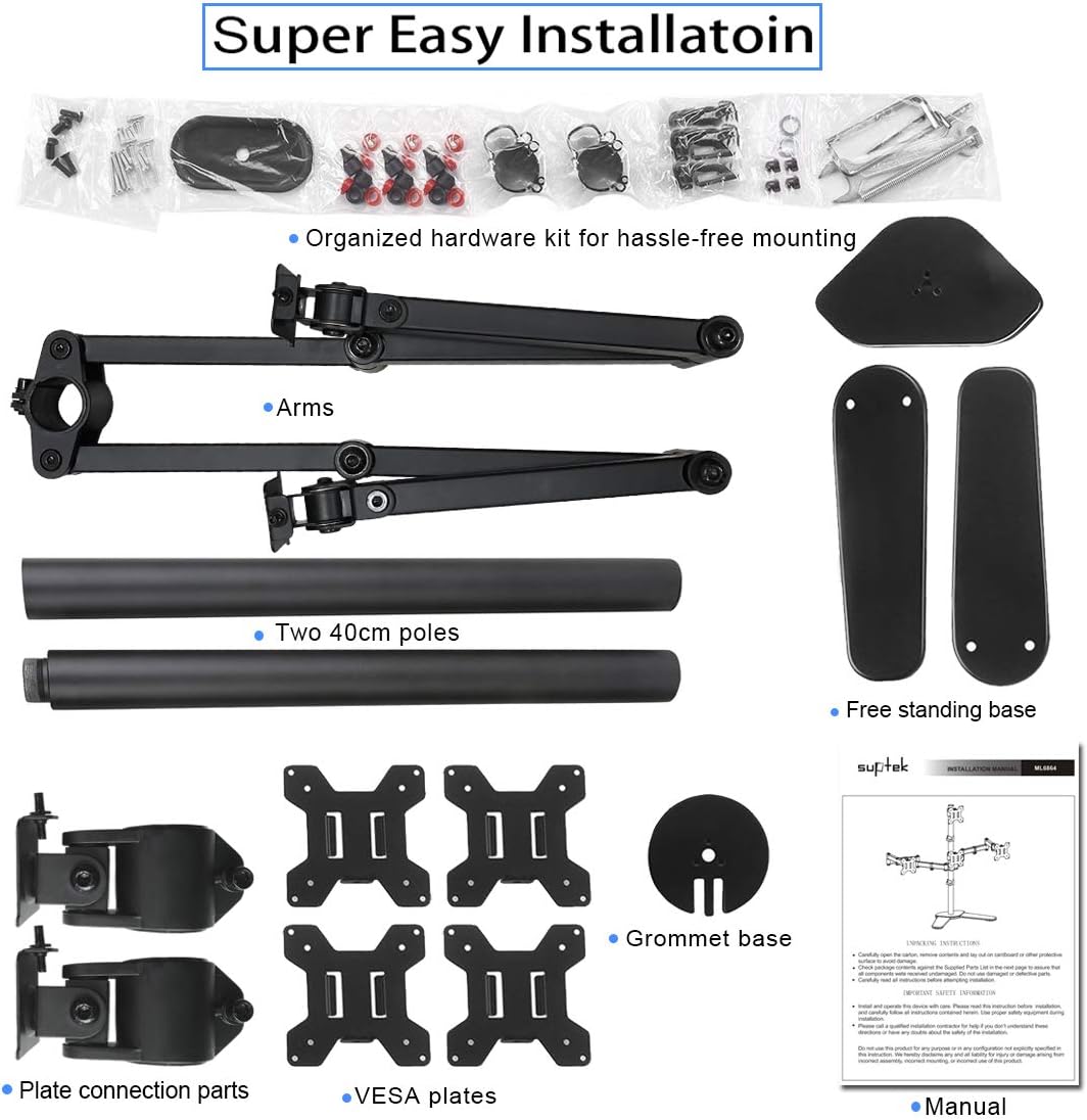 Suptek Quad LED LCD Monitor Stand up Free-Standing Desk Stand Extra Tall 31.5" Pole Heavy Duty Fully Adjustable Mount for 4 (3+1) / Four Screens up to 27 inch (ML6864)