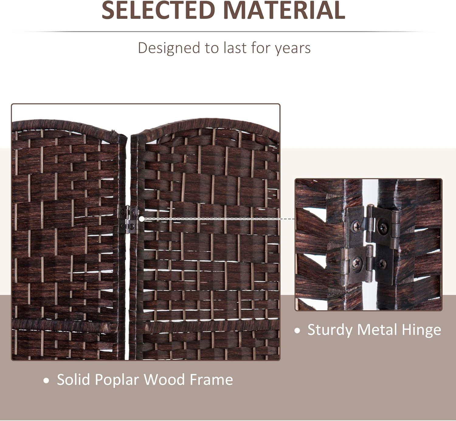 HOMCOM Room Divider, 3 Panel Folding Privacy Screen, 6FT Tall Portable Wicker Weave Partition Wall Divider for Bedroom, Home Office, Brown