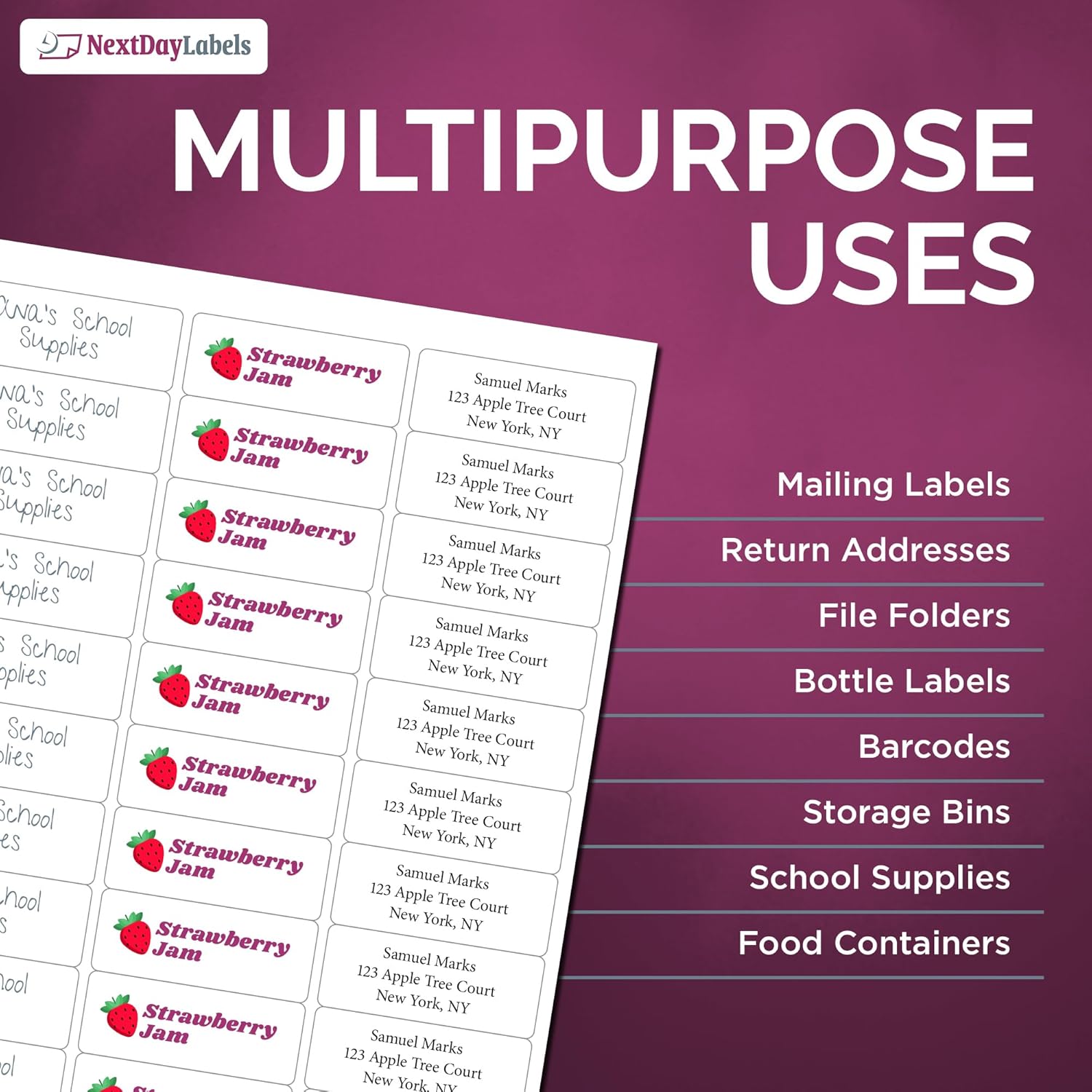 NextDayLabels - Laser/Ink Jet White Labels (2-5/8" x 1" - 30 Per Page | 7,500 Labels)