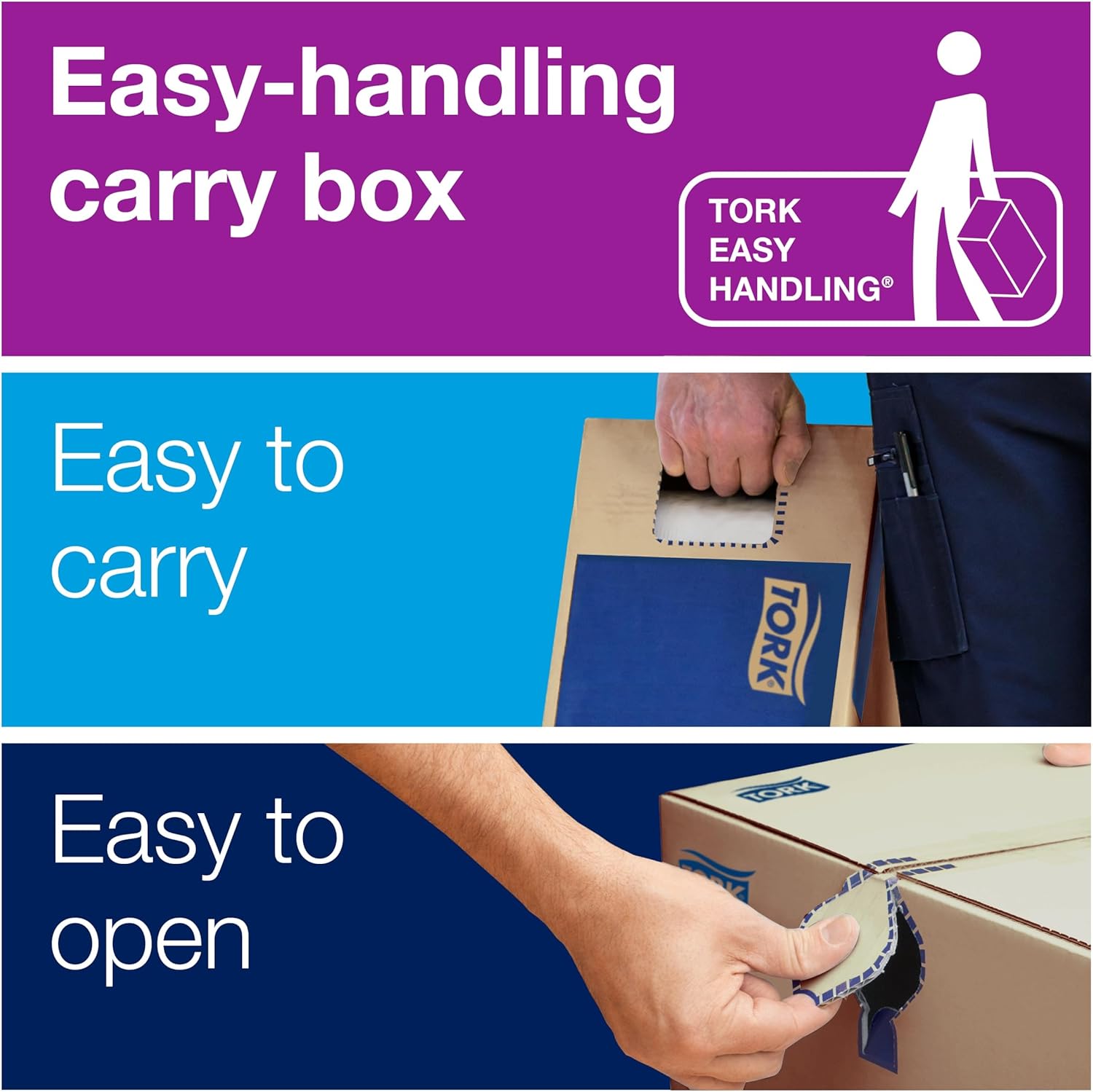 - Don't struggle with transport and storage—Tork Easy Handling packaging simplifies opening, transport, and disposal.