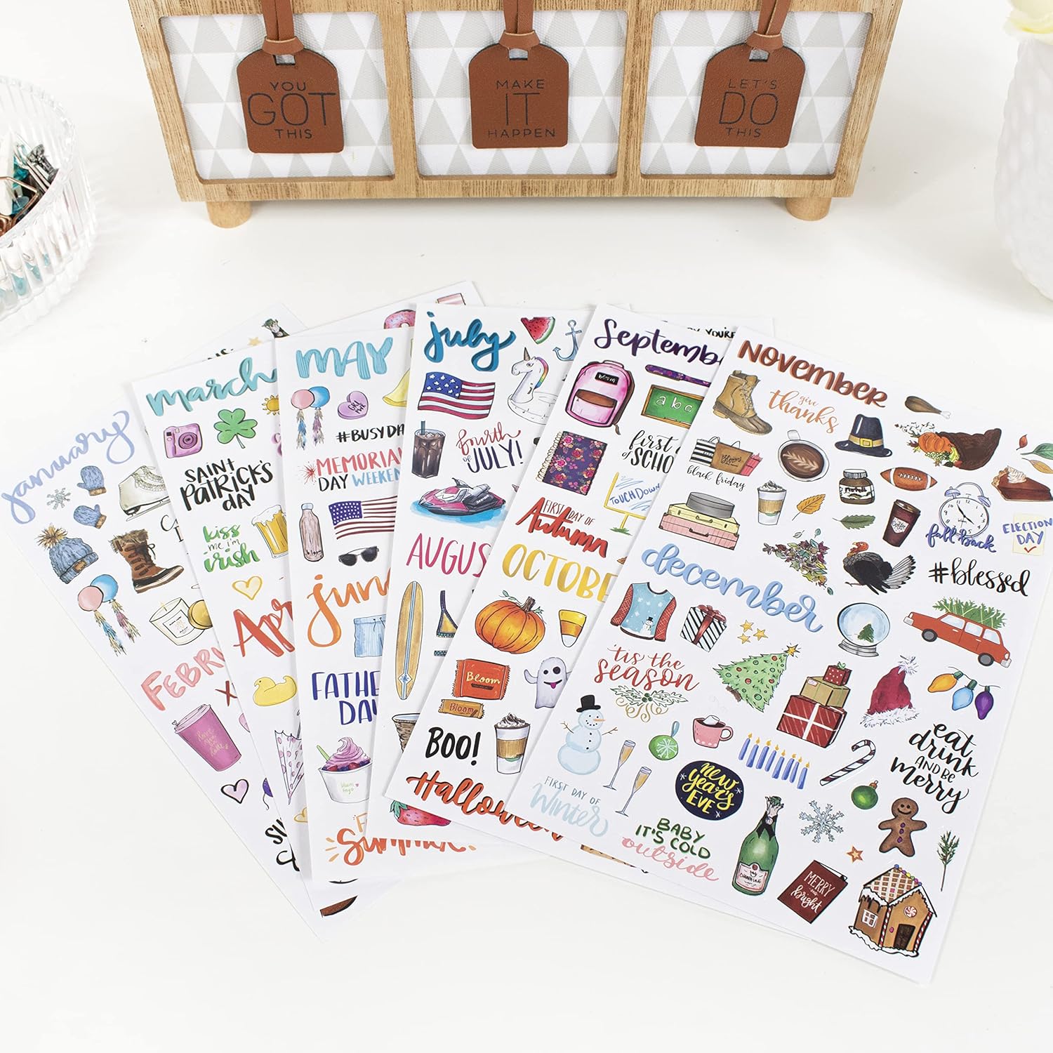 - One sheet covers 2 months of stickers! One pack covers a full year of holiday decorating!