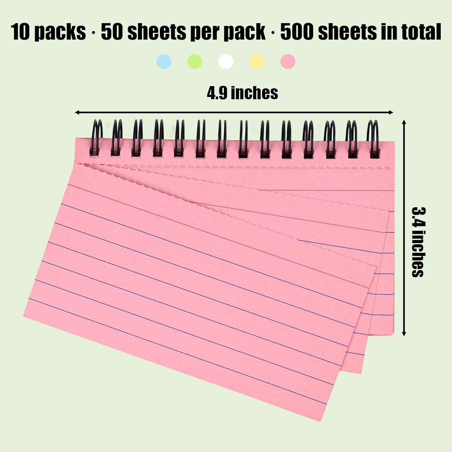 - What You Will Get - You will get 10 count heavyweight index cards in 5 different colors, pink, yellow, blue, white and green. Each index cards measures 3.4 x 4.9 inches