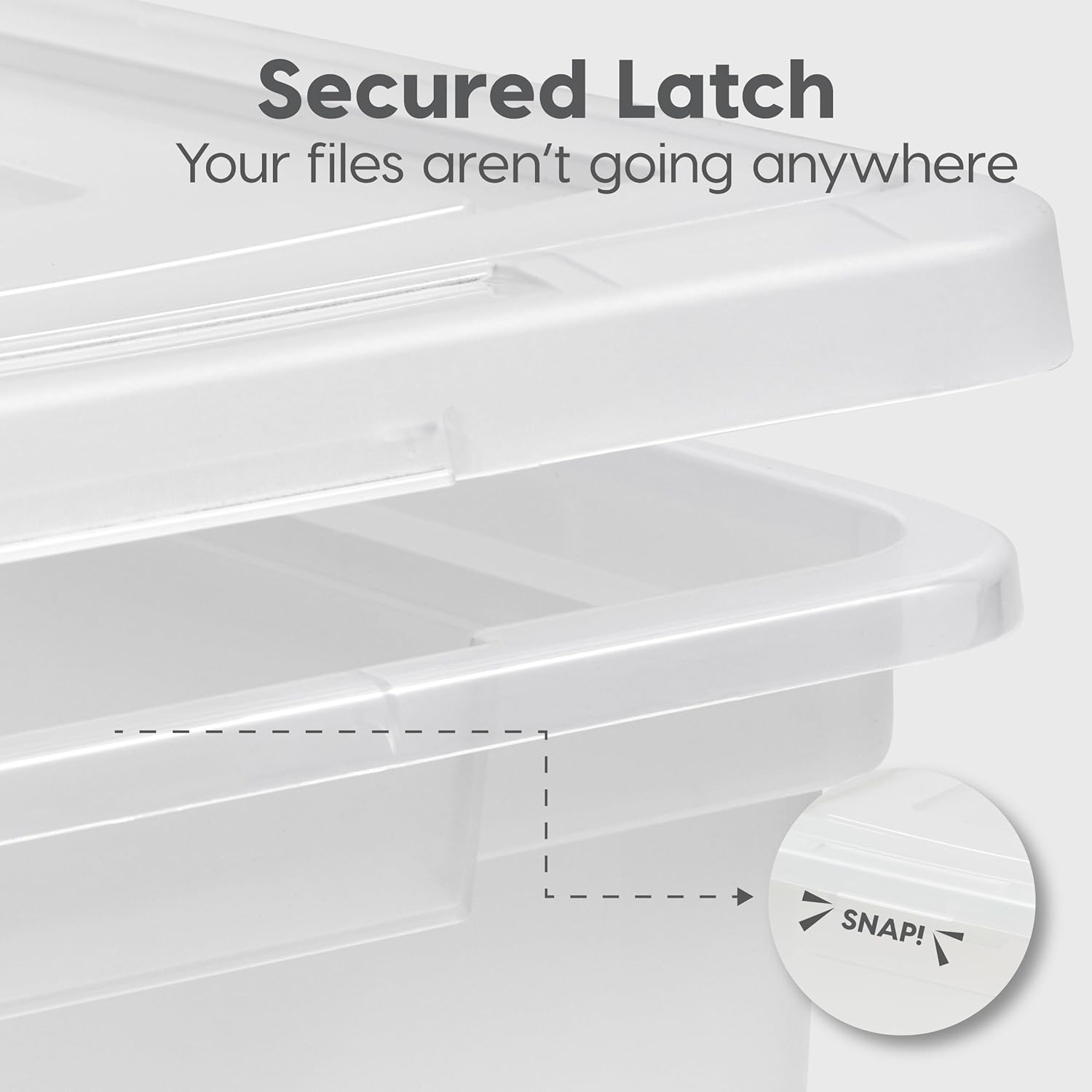 IRIS USA File Box, Plastic File Organizer with Lids for Letter/Legal File, Portable Document Box For Moving, Storage Bin with Durable and Secure Lid, Stackable Nestable BPA-Free, Black 35 Qt. 4 Pack