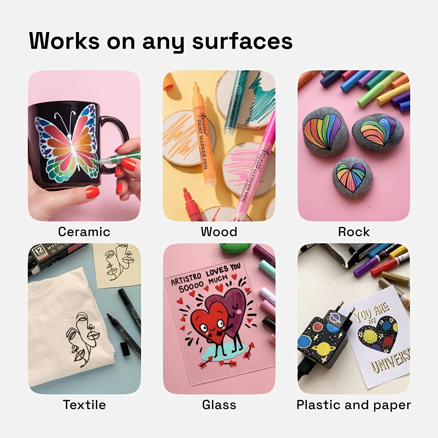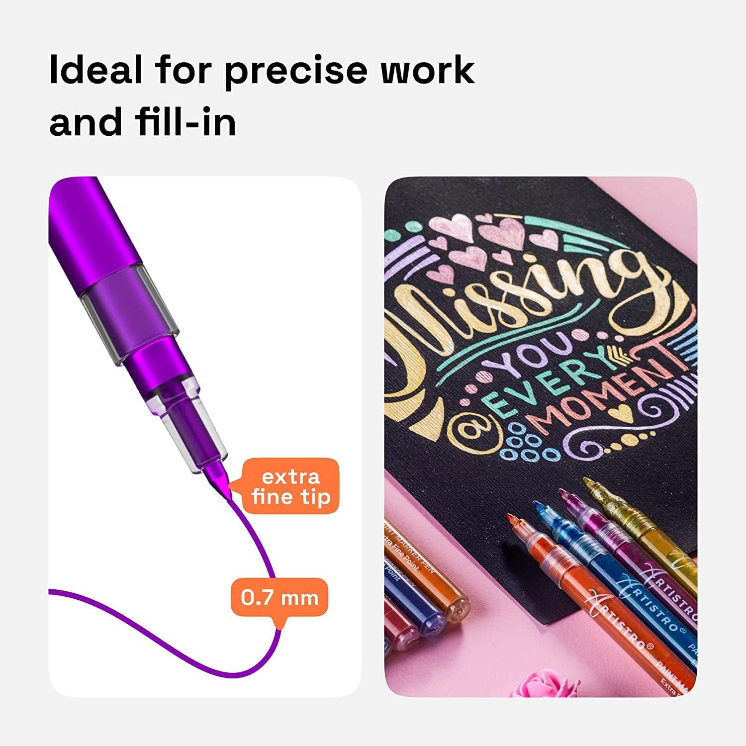 ARTISTRO 12 Metallic Paint Pens for Glass, Rock Painting, Ceramic, Wood, Fabric, Pebbles, Scrapbook Journals, Photo Albums, Card Stocks - Acrylic Paint Markers Extra-Fine Tip 0.7mm
