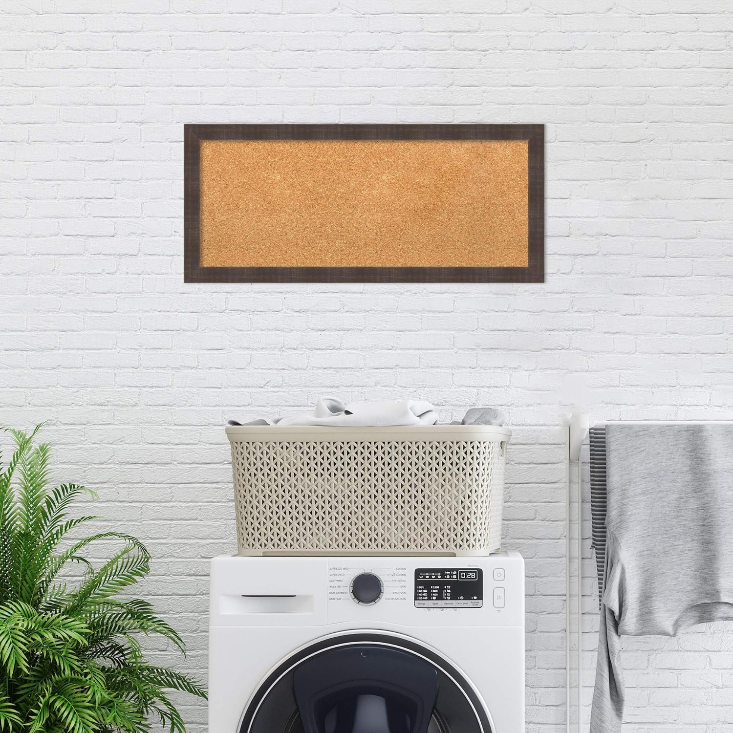 Amanti Art Natural Cork Board for Wall, 14x32 Vision Board with Brown Wood Frame, Medium Corkboard Office Decor for Home Organization, Rustic Farmhouse Corkboard Pinboard to display items for home