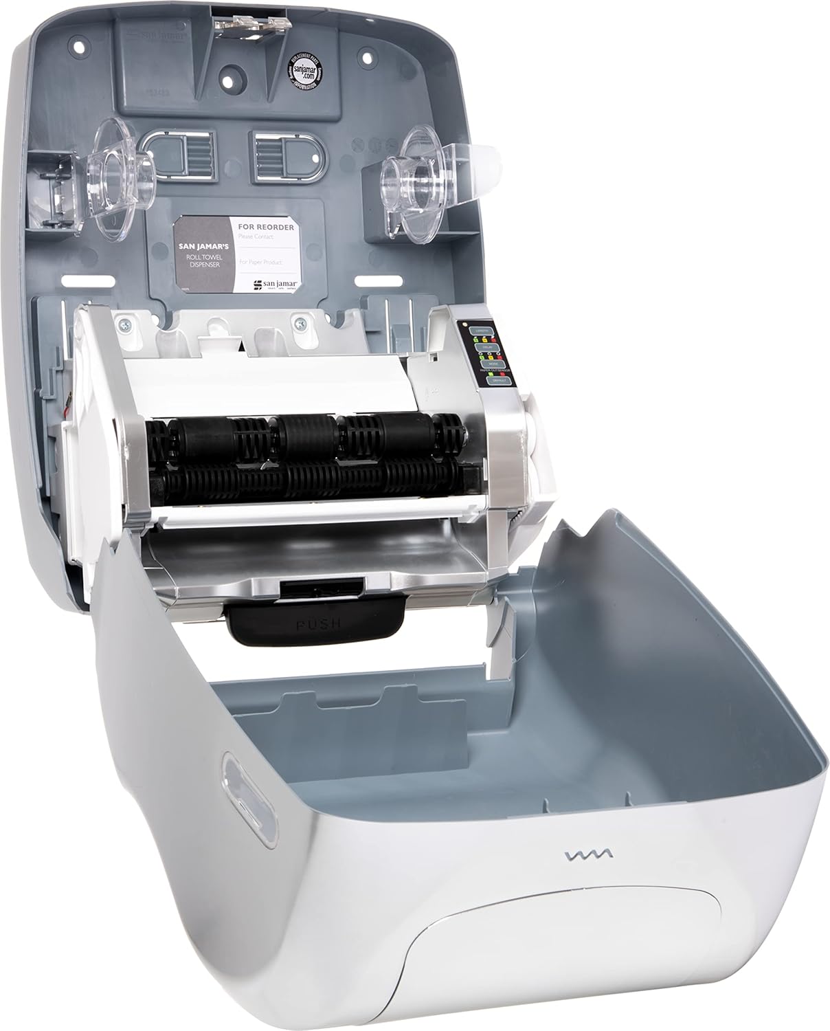 - Benefit from manual "Push" bar operation during low battery situations, ensuring continuous access to paper towels for uninterrupted service