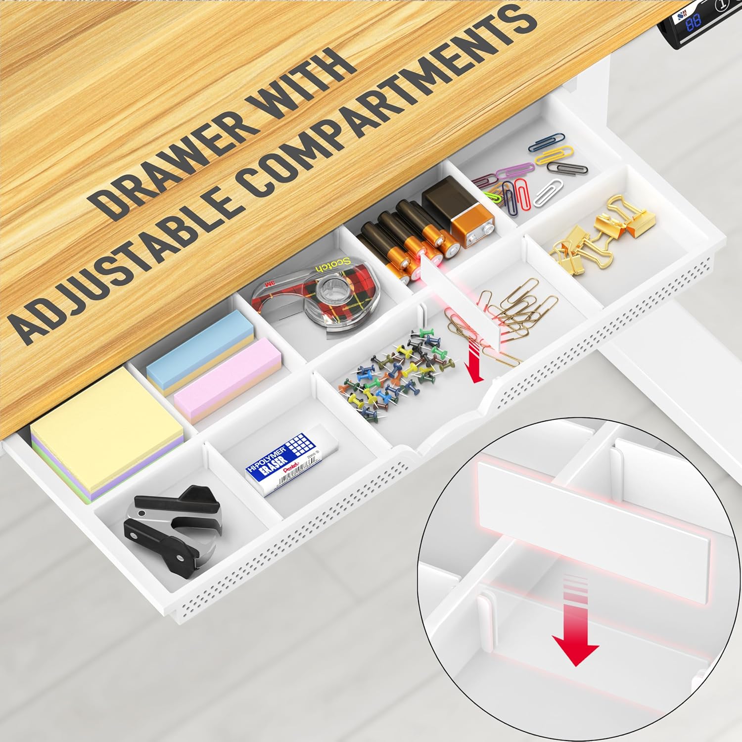 SHW 48-Inch Electric Height Adjustable Standing Desk with Drawer, Memory Preset and Cable Management Tray, Oak