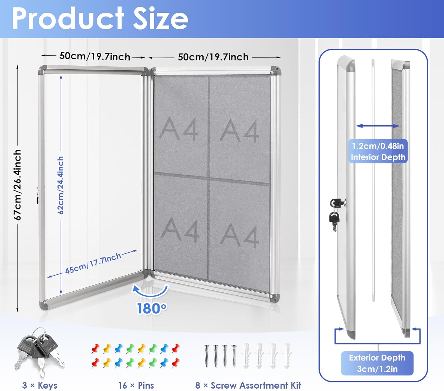 - Professional and Organized Look —Offering a compact solution to save valuable wall space and helps to keep the wall clean and organized,such as an office, school, or community center.