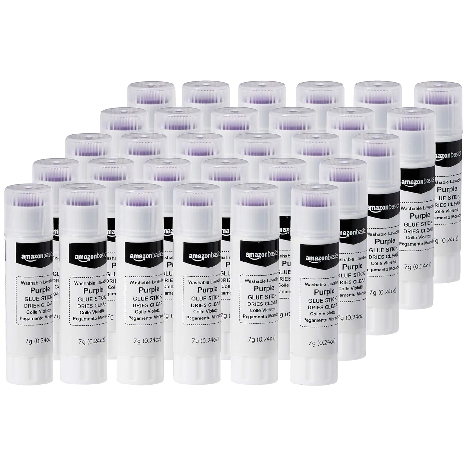 Amazon Basics Purple Washable School Glue Sticks, Dries Clear, 0.24-oz Stick, 30-Pack
