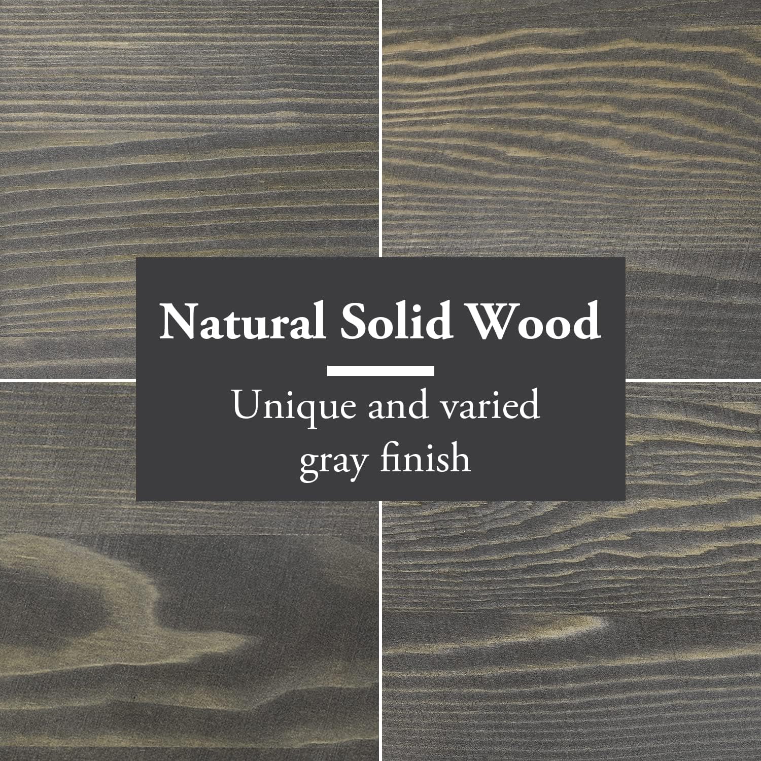 - Made from durable wood and stained with a rustic gray brown finish, providing contemporary style