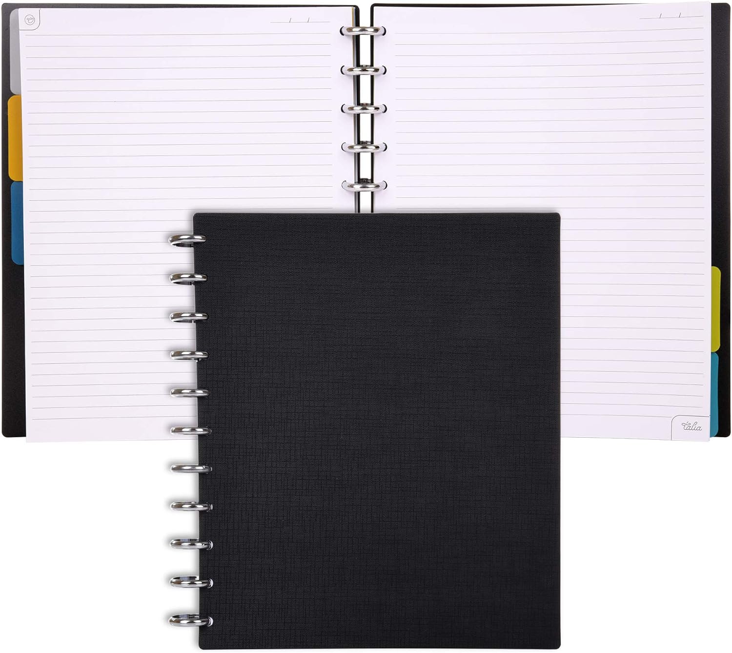 Talia Discbound Notebooks, Planner, Customizable, (yBlack w/Silver Discs, Letter (8.5in x 11in))