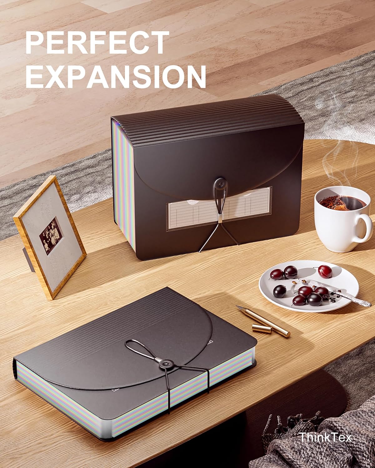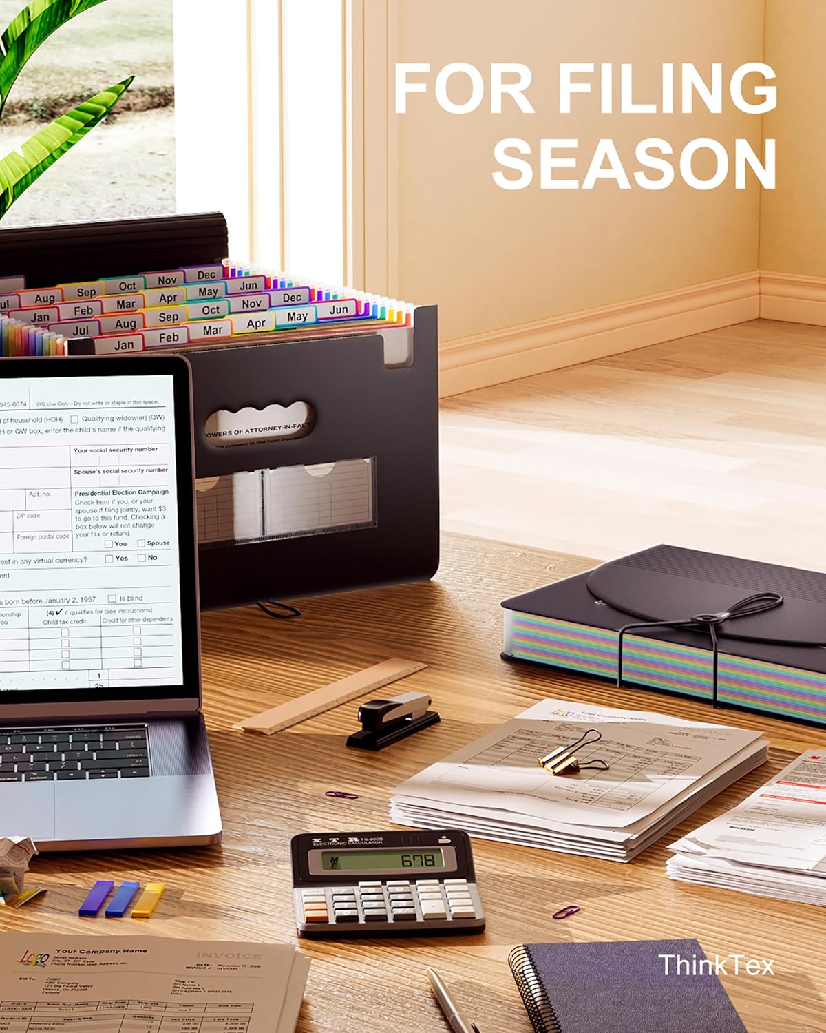 - MONTHLY BILLS ORGANIZER - ThinkTex 26 pockets accordion file organizer, top and bottom both expandable, multi-colored tabs, for letter/A4 size