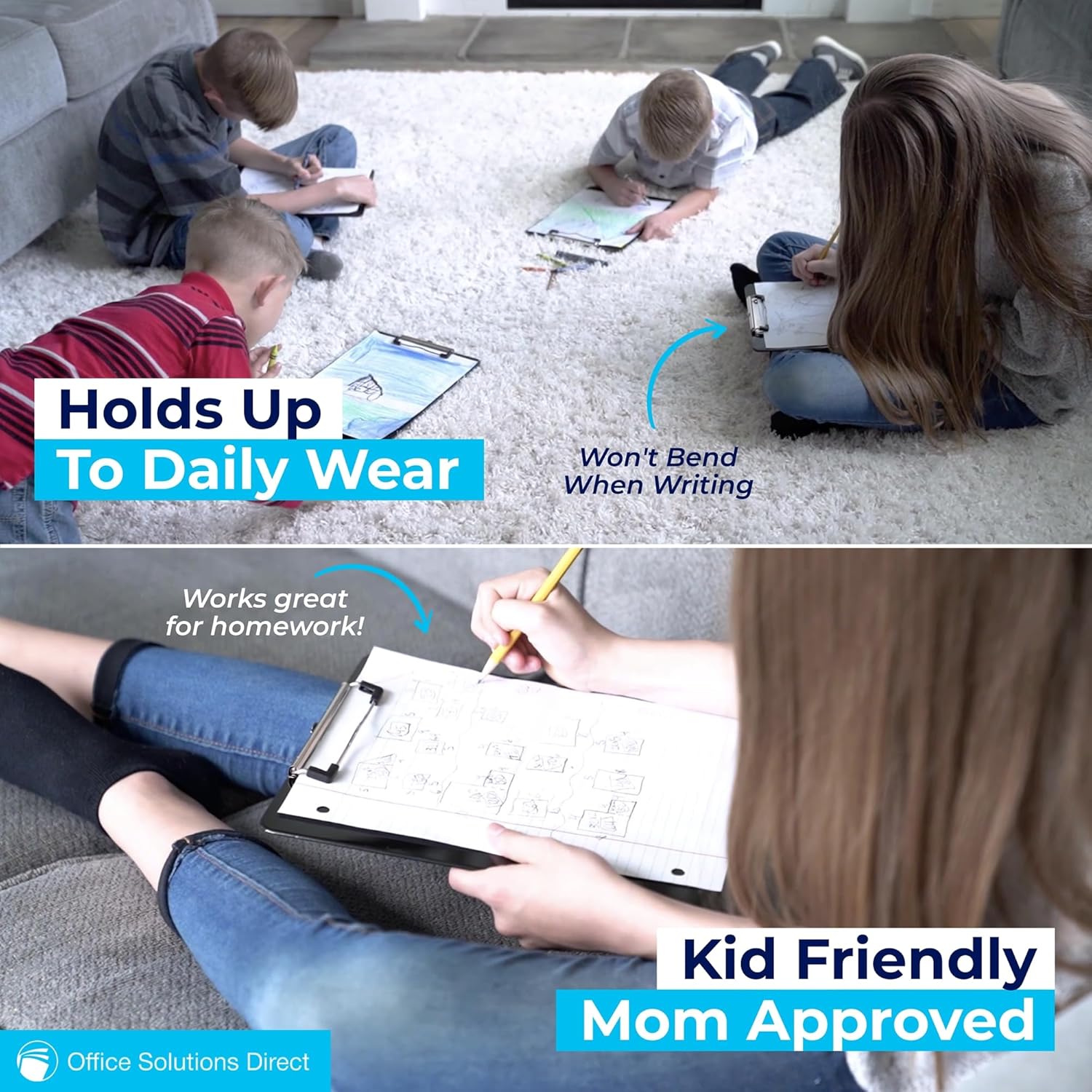 - ✅HARD BUT NOT BRITTLE: While we can’t say you won’t get a few scratches on these, we can tell you it will not chip if you accidentally drop it on the floor. These black clipboards are made of lightweight yet durable plastic; smooth, waterproof surface; suitable for indoor or outdoor use. Not thick and bulky like cheap clipboards, but they won’t bend either!