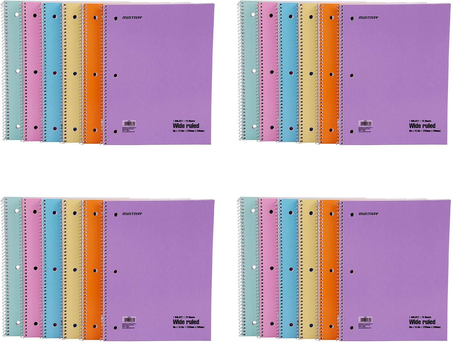 Mintra Office Spiral Notebooks (Pastel - Wide Ruled, 24pk (4-6pks))
