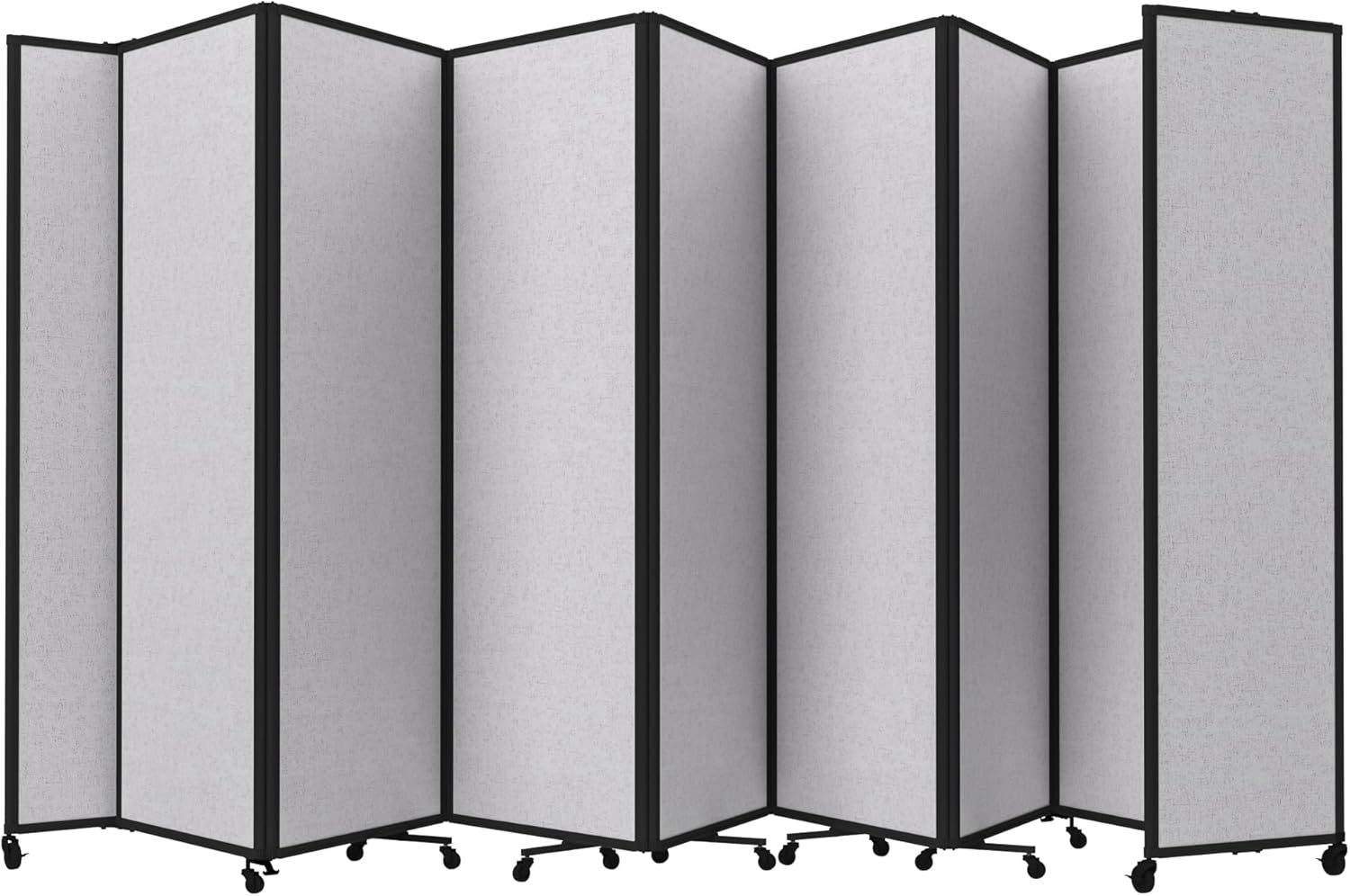 - THOUGHTFUL DESIGN: Made to roll around easily on wheels, this portable room separator also features locking casters to hold it in place. It comes with a trackable surface, sound-dampening fiberglass panels and a folding design for easy storage.