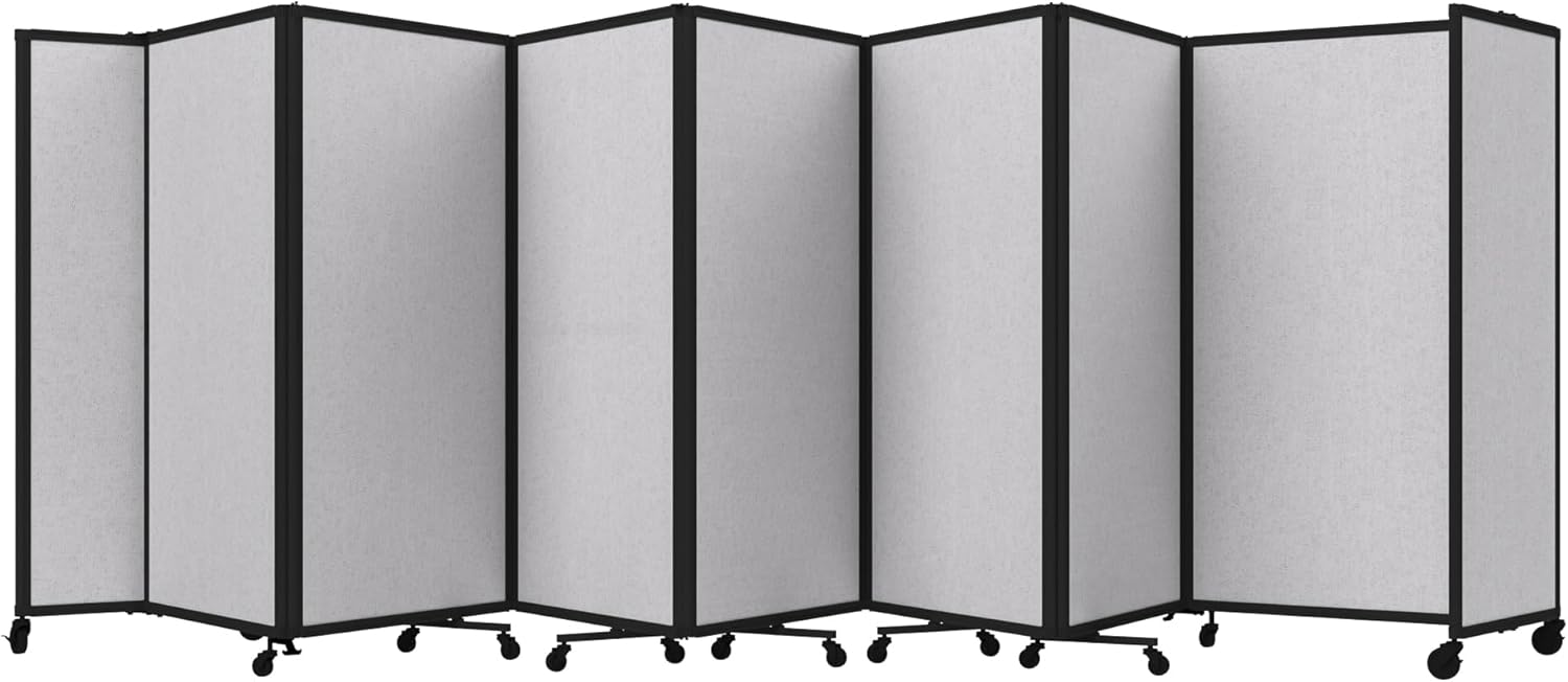 - THOUGHTFUL DESIGN: Made to roll around easily on wheels, this portable room separator also features locking casters to hold it in place. It comes with a trackable surface, sound-dampening fiberglass panels and a folding design for easy storage.