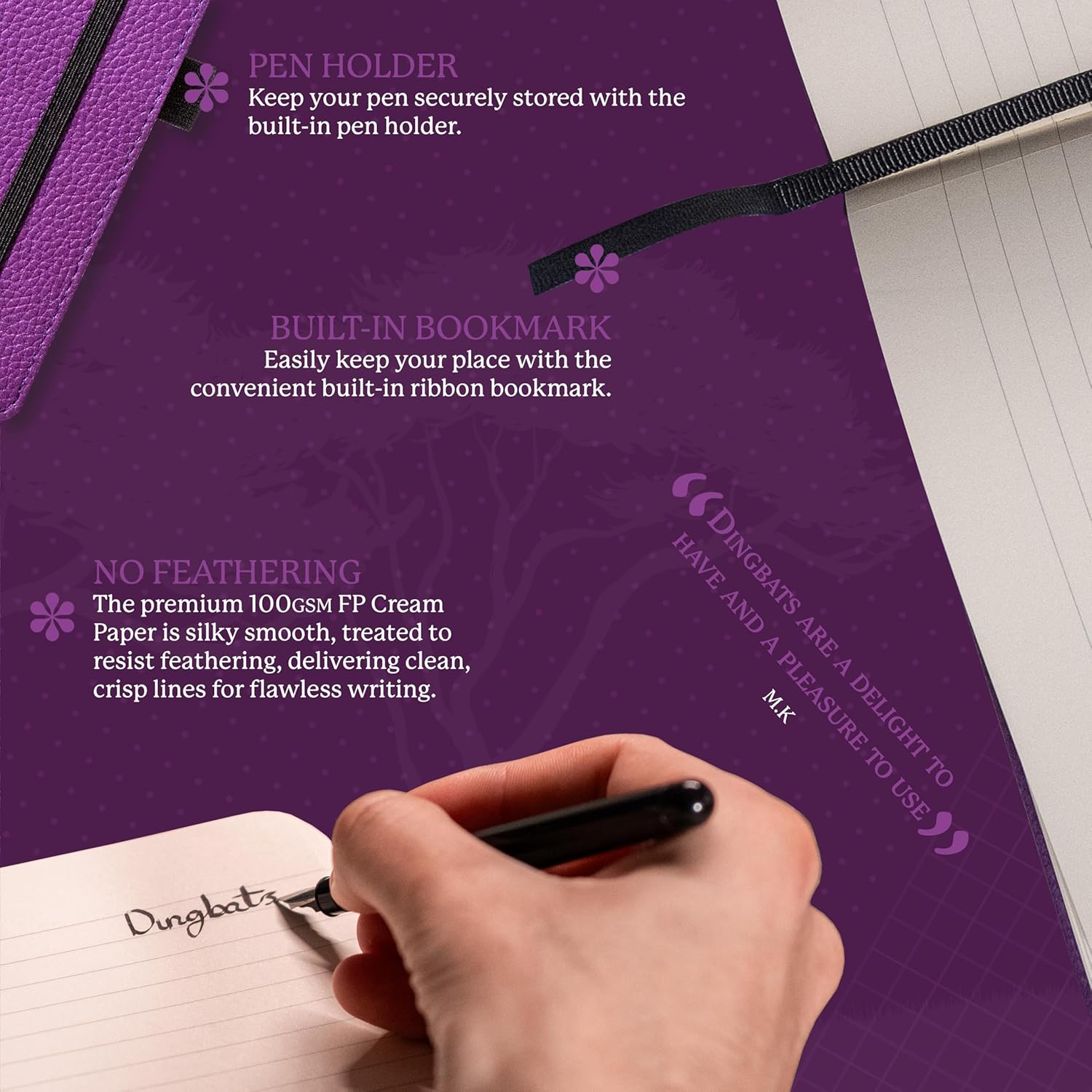 - SUSTAINABLY SOURCED, ENVIRONMENTALLY CONSCIOUS: Made from recyclable materials and FSC certified paper, our notebooks are Vegan Certified. Dingbats* Notebooks Ltd donates 2% of UK sales to WWF-UK, supporting environmental conservation.