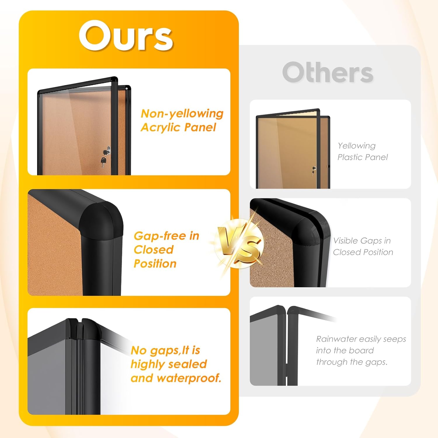 - Secure and Protected Display —Lockable acrylic doors and key mechanisms ensure that important information are kept safe from the elements, theft, or tampering.