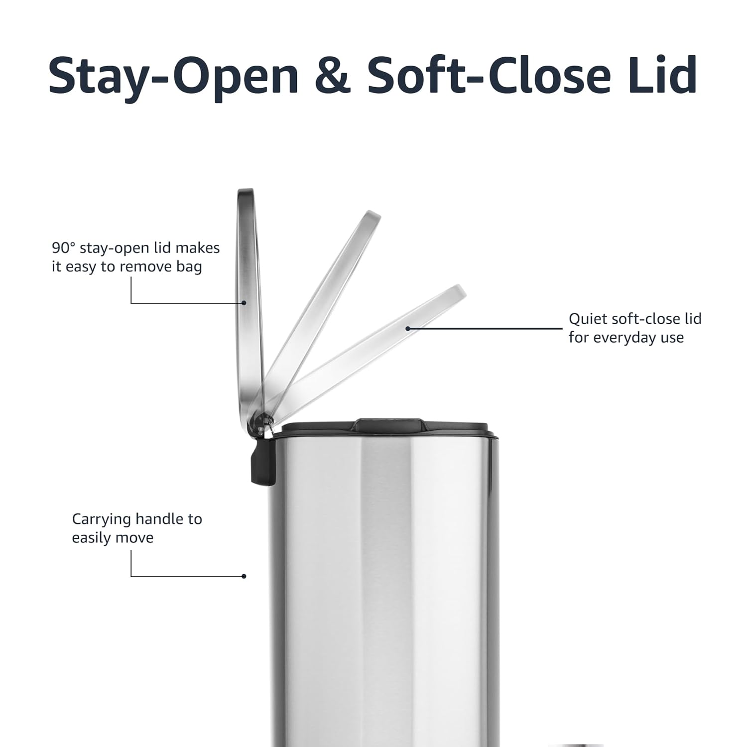 - EVERYDAY USE: Stay-open lid, removable bucket, and carry handle ensure easy, convenient trash disposal