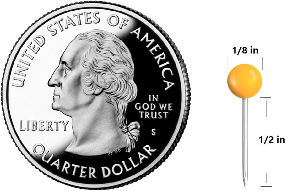 Map Tacks 1/8-Inch Assorted Color Beads Head Map Marking Push Pins,500-count (Yellow)